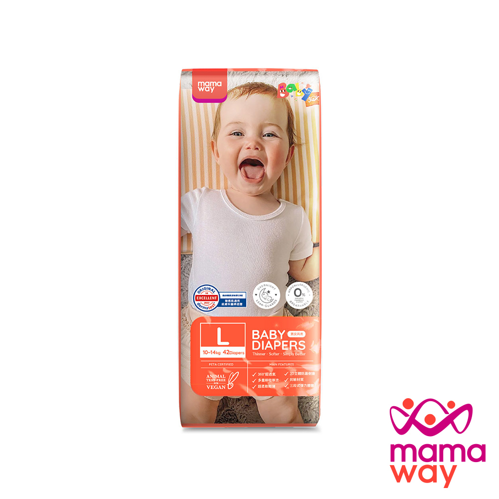 【Mamaway媽媽餵】紙尿褲(Lx42片)白色,LDisposable DiapersMamaway 媽媽餵 母嬰品牌領導者