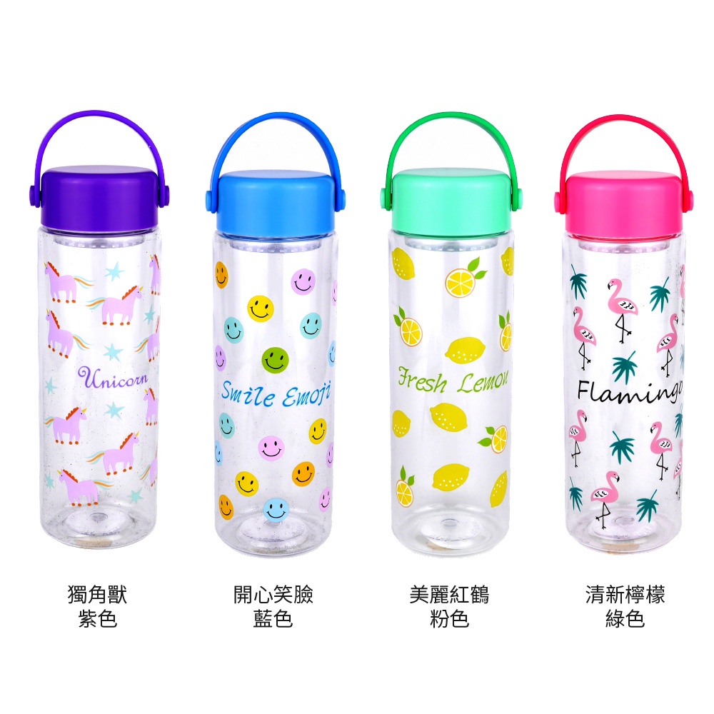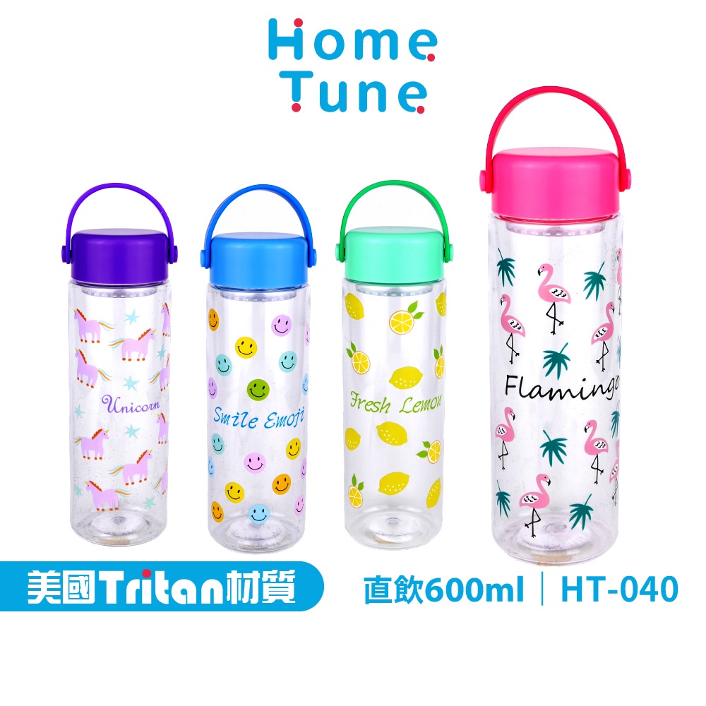 【特價出清】Home Tune 旋轉蓋直飲水壺600ml(附濾網)|美國Tritan材質水壺水杯水瓶防漏水壺HT-040獨角獸|紫色|開心笑臉|藍色|美麗紅鶴|粉色|清新檸檬|綠色UtensilsHome Tune家音