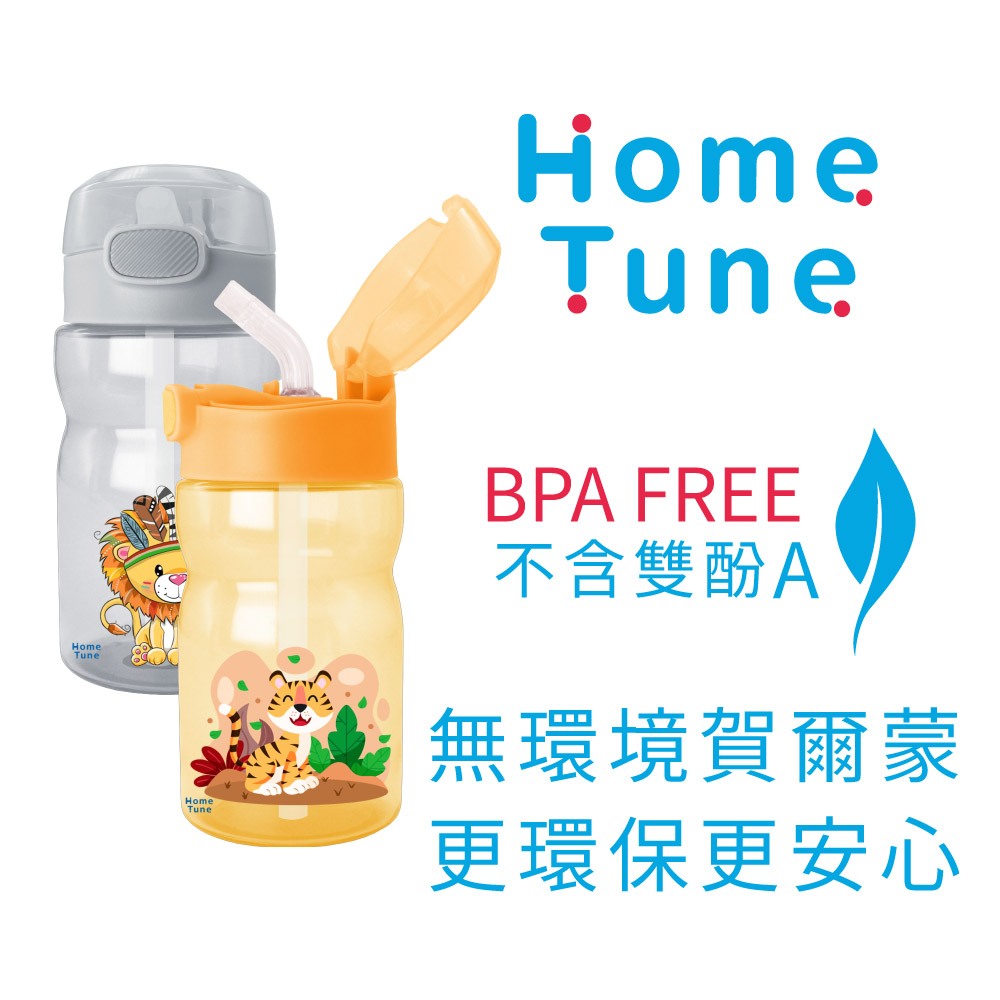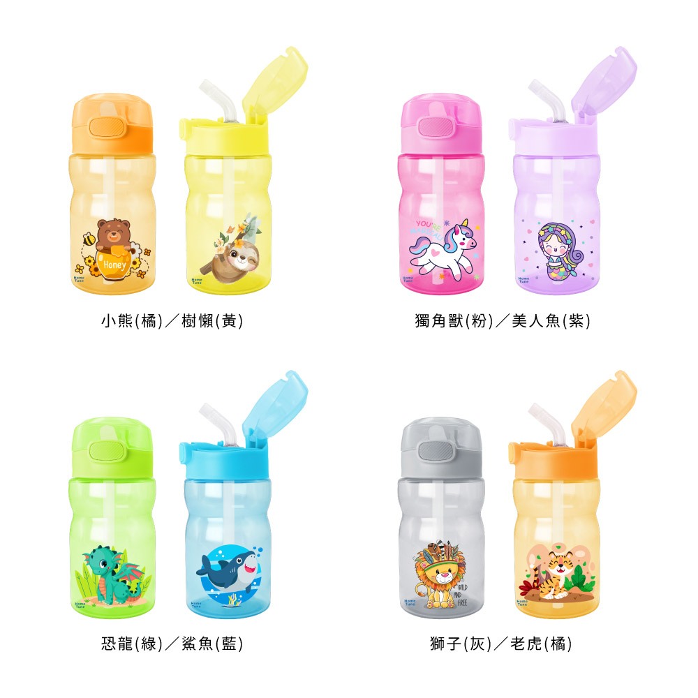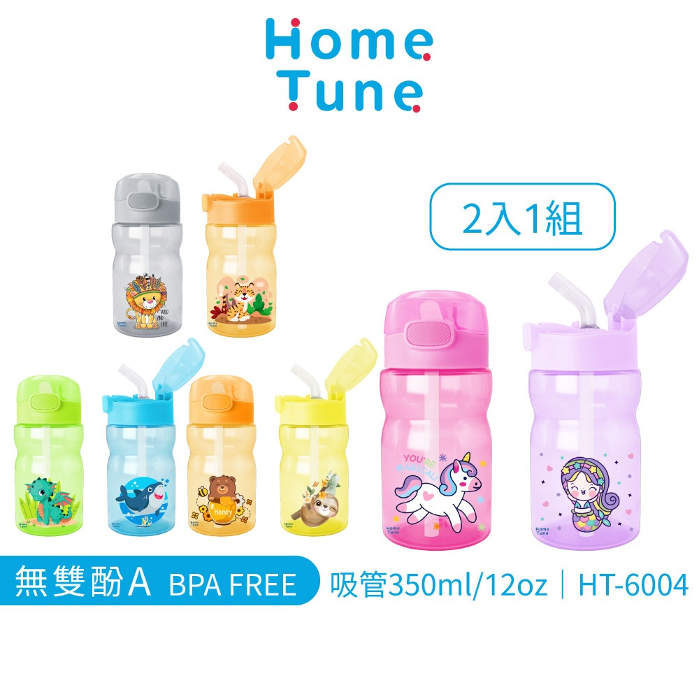 Home Tune家音 彈蓋吸管式水壺350ml(一組2入)|無雙酚A水壺兒童水壺吸管水壺透明水壺隨身瓶_HT-6004獅子(灰)/老虎(橘)|恐龍(綠)/鯊魚(藍)|獨角獸(粉)/美人魚(紫)|小熊(橘)/樹懶(黃)UtensilsHome Tune家音