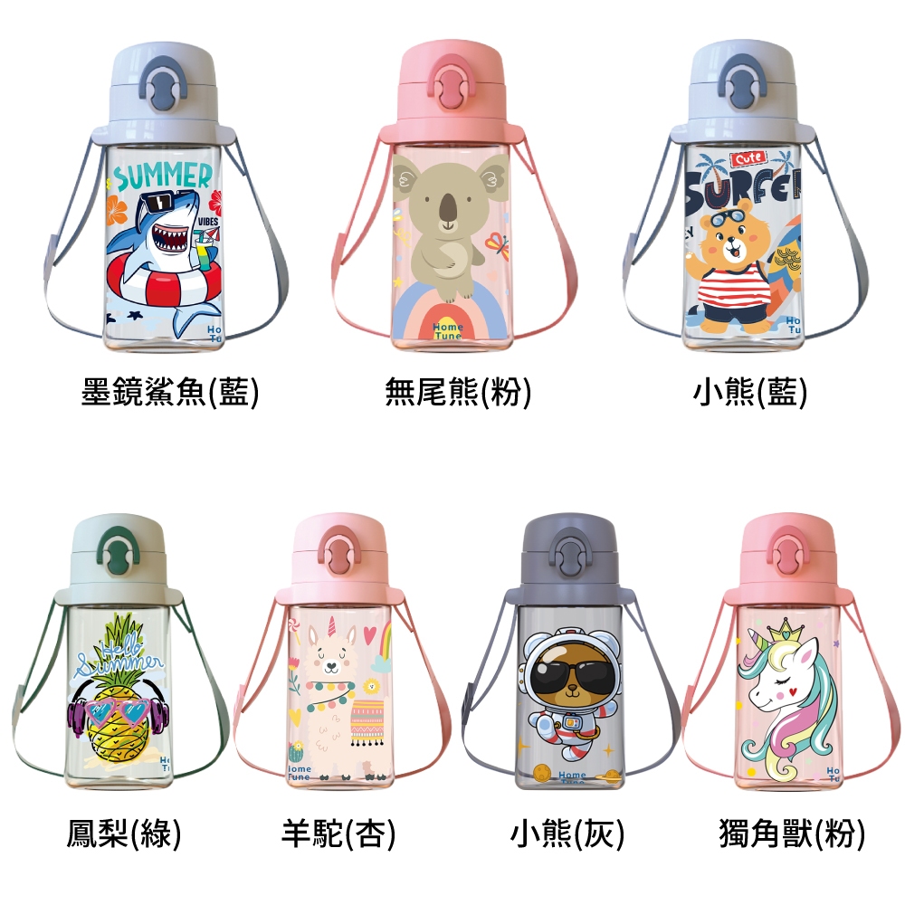 Home Tune家音 鎖扣彈蓋吸管式水壺570ml 附背帶|Tritan材質水壺兒童水壺斜背水壺吸管水壺HT-2009獨角獸(杏)|貓咪(粉)|鯊魚(藍)|小狗(綠)|獨角獸(粉)|羊駝(杏)|墨鏡鯊魚(藍)|大嘴鳥(綠)|貓咪(紫)|小熊(灰)|小熊(藍)|無尾熊(粉)|鳳梨(綠)UtensilsHome Tune家音