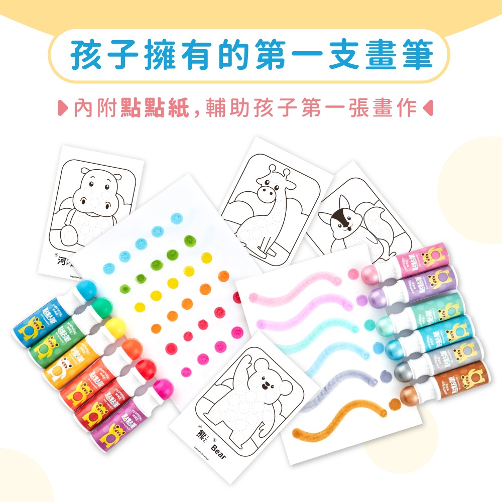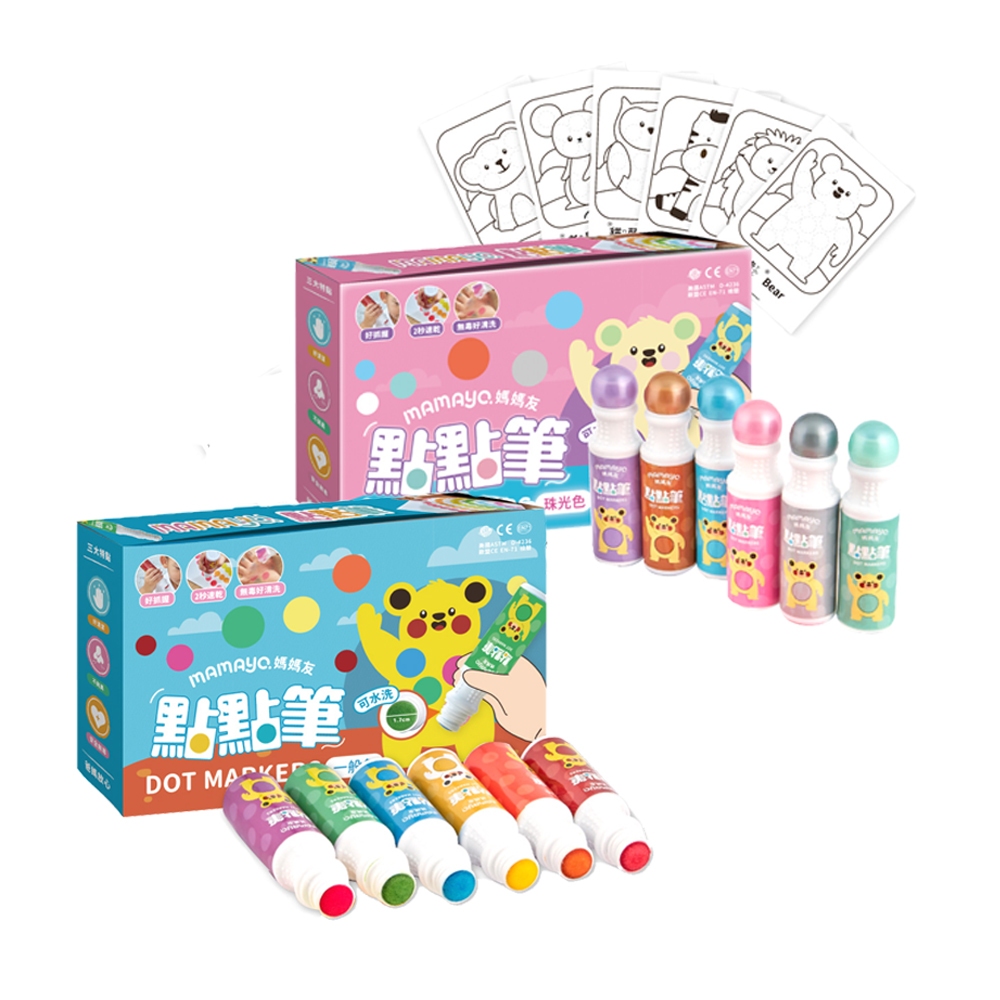 【mamayo 媽媽友】無毒可水洗點點筆6色組(60ml/附點點塗鴉紙)兩色可選標準六色組|珠光六色組Educational ToysHi-toys