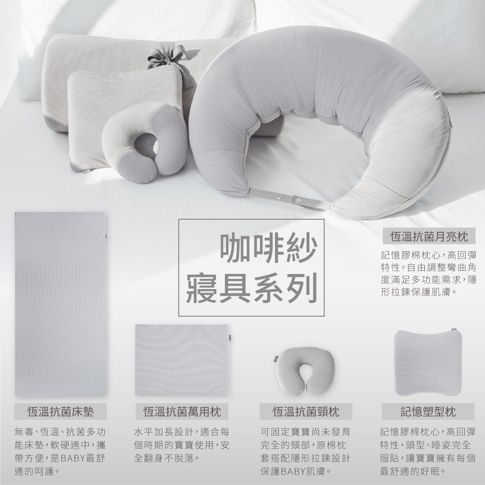 【Gennies 奇妮】智能恆溫抗菌嬰兒萬用平枕-咖啡紗(GX86)-安撫枕 寶寶抱枕 哄睡 枕頭 防驚跳 新生兒午睡枕FMattresses & BeddingGennies 奇妮孕哺(官方旗艦店)