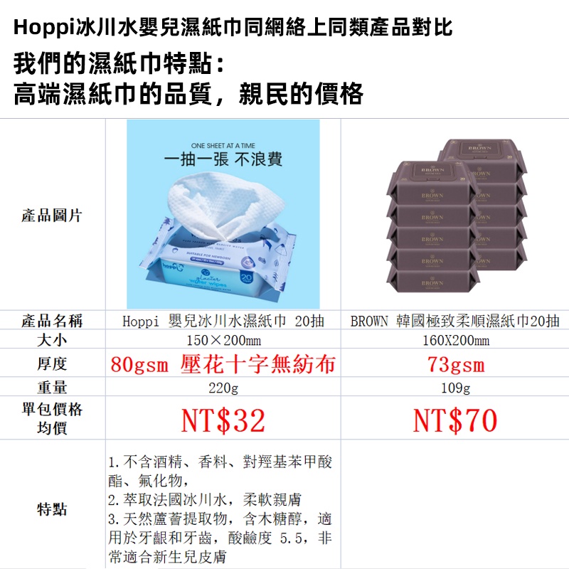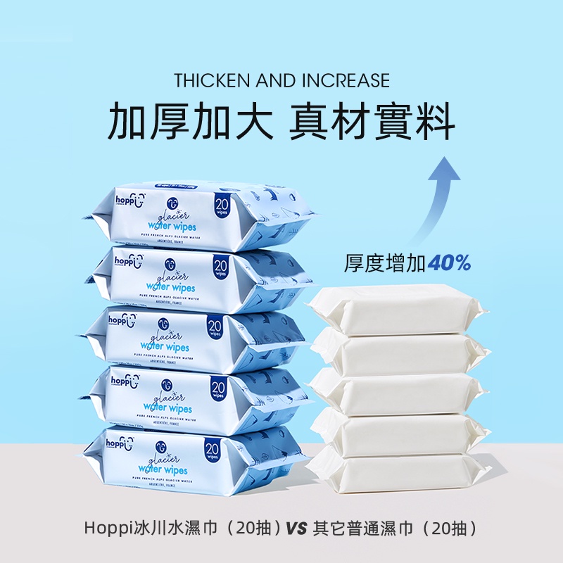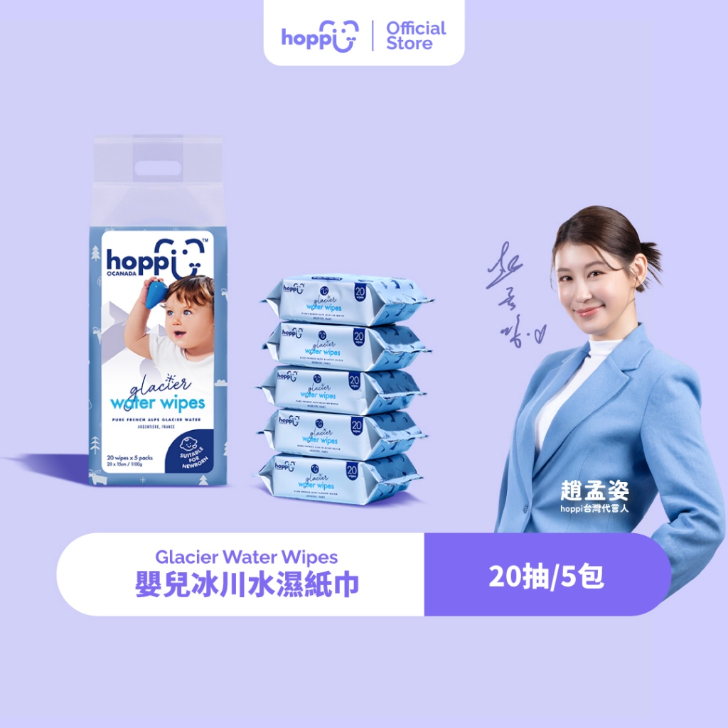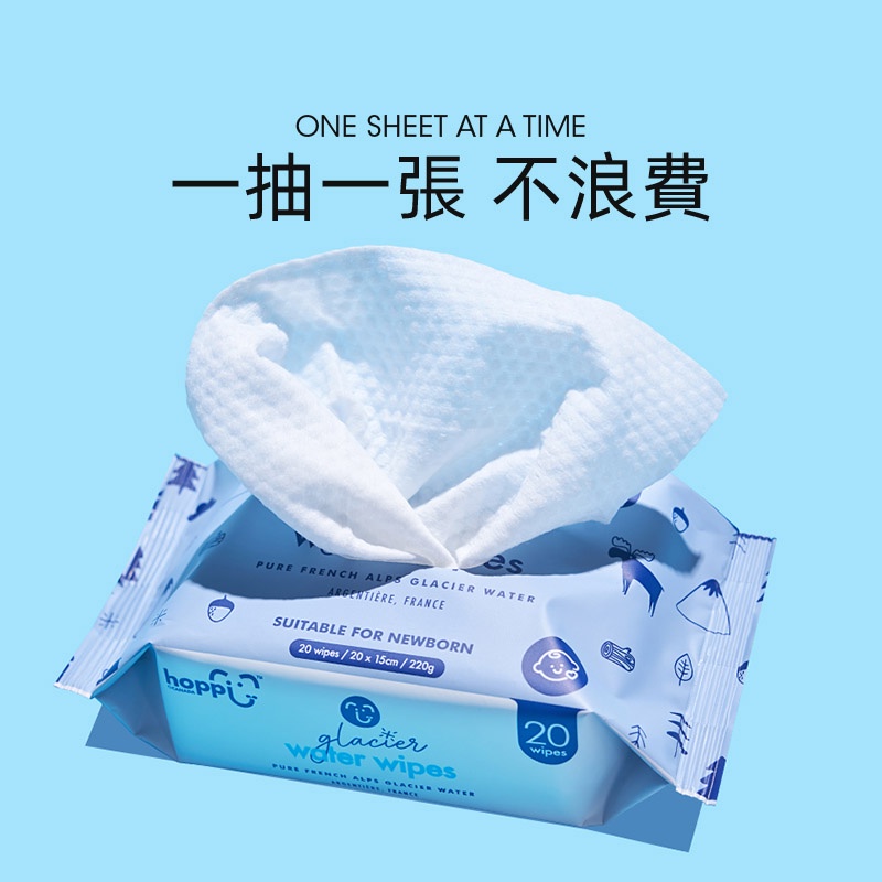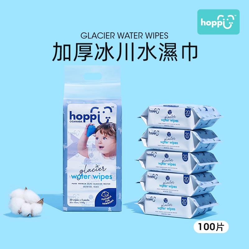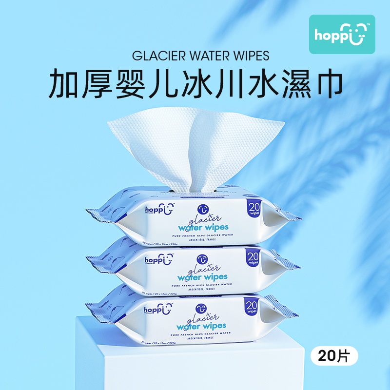 Hoppi 嬰兒冰川水濕紙巾特厚款 20抽5包入 無酒精 無香精20抽隨手包1串(5包)WipesHoppi 官方旗艦店