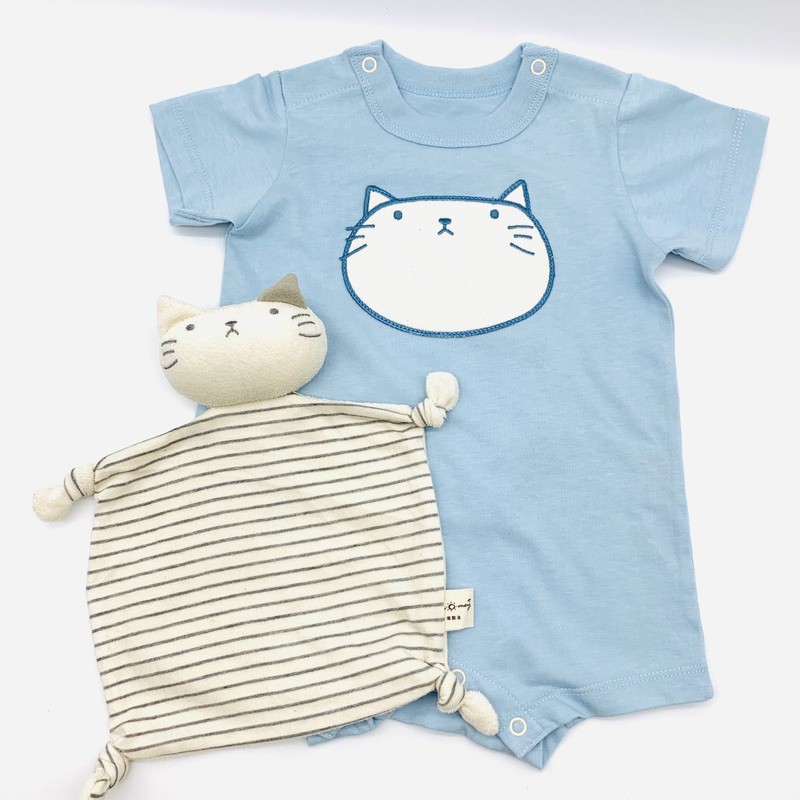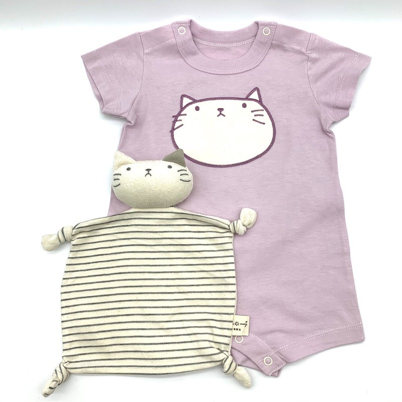 【HomeyOrganic】喵喵彌月禮盒附提袋(粉藍二色) 連身服+安撫巾+迷你巾 GOTS有機認證棉知蓮有機棉MIT70公分,粉色|70公分,藍色|80公分,粉色|80公分,藍色HomeyOrganic 知蓮有機棉