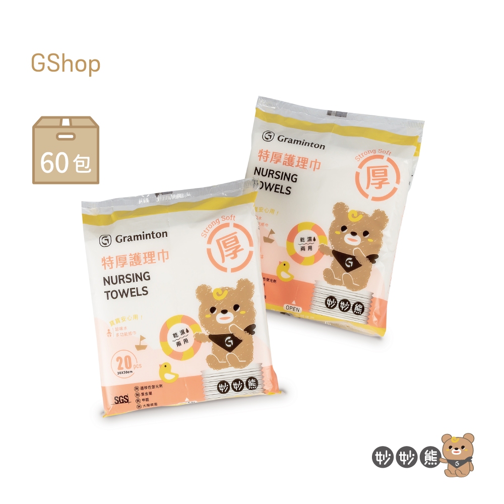 妙妙熊【特厚護理巾】(20張/包,60包/箱) 鉅瑋 拋棄式 一次性紗布巾 兩用巾 乾濕兩用巾 洗澡巾 擦澡巾60包/箱WipesGShop|鉅瑋官方直營店