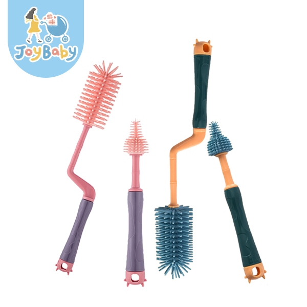 JOYBABY 360度旋轉矽膠奶瓶刷 矽膠奶嘴刷 多功能2件組 水壺刷 清潔刷不挑色隨機出貨Bottle-feedingJoyBaby就愛寶貝