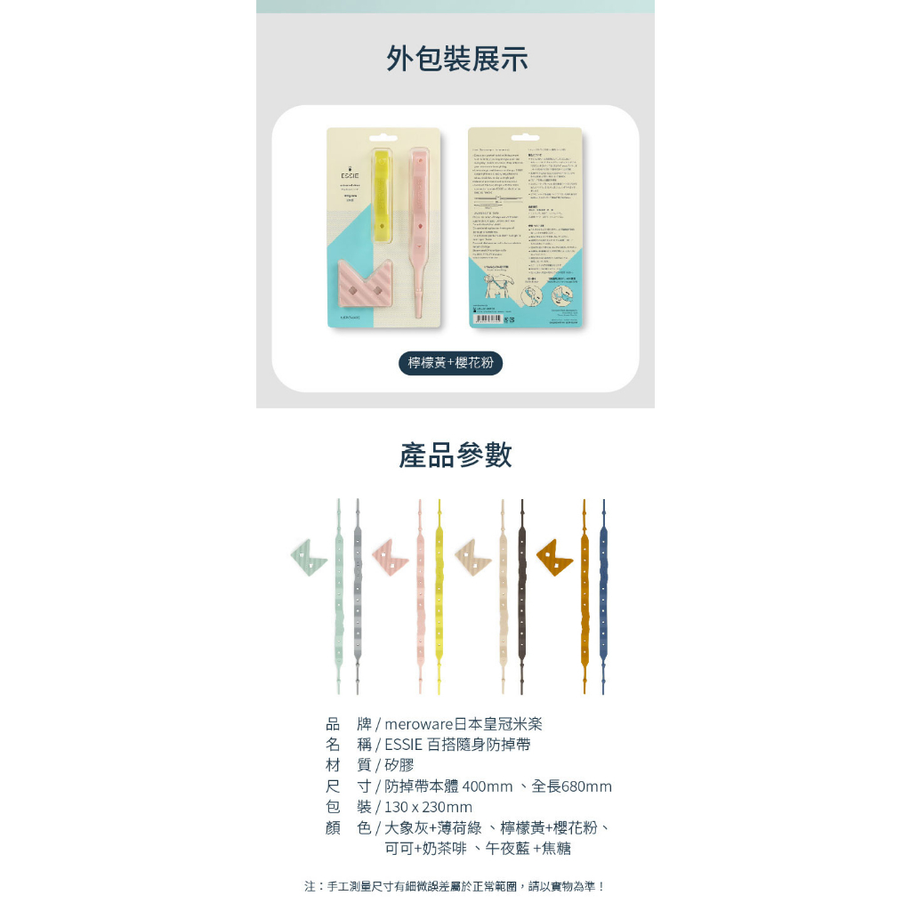 【MEROWARE】 ESSIE 嬰幼兒百搭隨身防掉帶 四色可選【La nube親子選物 台灣總代理】檸檬黃+櫻花粉|薄荷綠+大象灰|午夜藍+焦糖|可可+奶茶啡UtensilsLa nube親子選物 | bebenuvo meroware總代理
