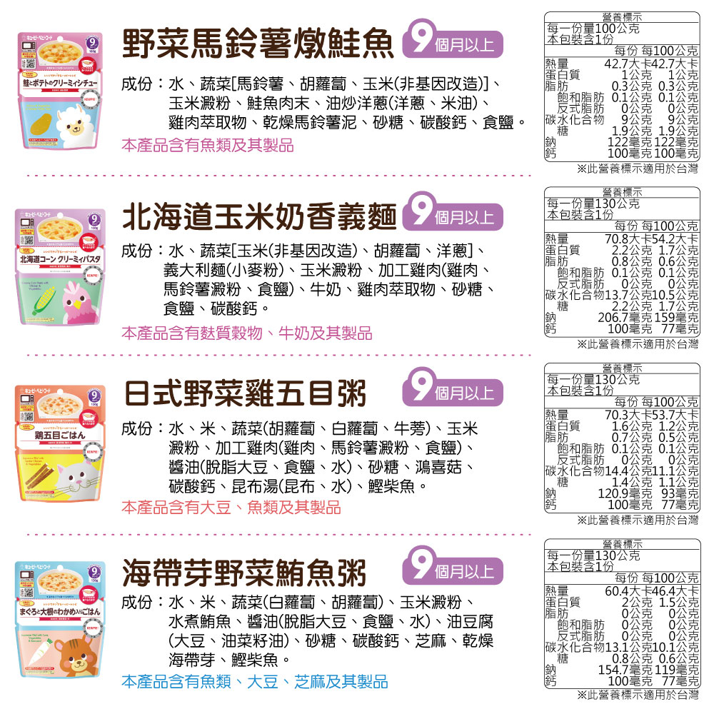 日本KEWPIE 寶寶快樂食譜系列9m+~12m+ Kewpie官方直營店MA-10野菜雞肉咖哩燉飯|MA-11野菜鮪魚什錦炊飯|MR-10野菜雞肉親子丼飯|MA-91海帶芽野菜鮪魚粥|MA-92日式野菜雞五目粥|MA-94野菜馬鈴薯燉鮭魚|MR-91北海道玉米奶香義麵Baby Porridge, Puree & CerealKewpie官方直營店