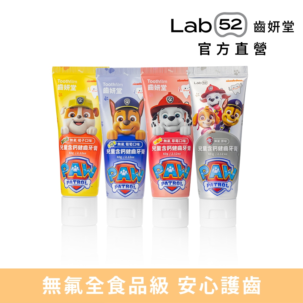 【Lab52齒妍堂】兒童無氟含鈣健齒牙膏 60g|全食品級配方 三重鈣 無氟牙膏 汪汪隊牙膏 兒童牙膏 學習刷牙 可吞食橘子|葡萄|草莓|原味木糖醇(新上市)Baby Oral CareLab52 齒妍堂| 官方旗艦館
