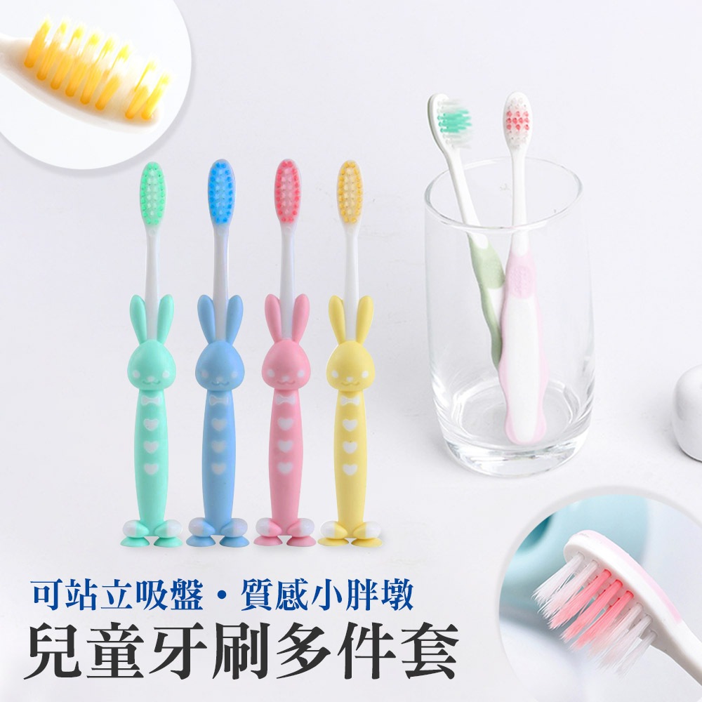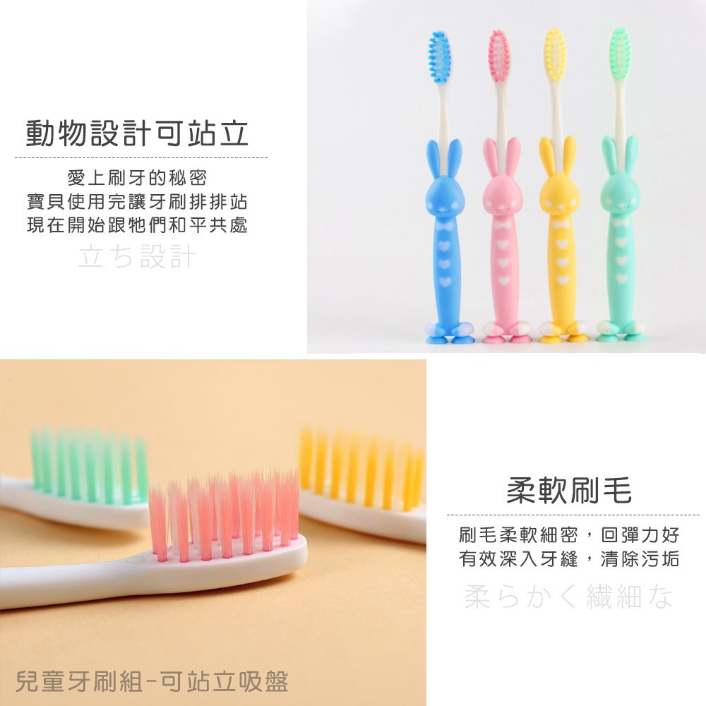 【LAVIDA嚴選】兒童牙刷4入1組 卡通吸盤牙刷 可愛牙刷 兔子牙刷 小熊牙刷 環保裝 兒童牙刷 牙刷小牙刷 (四入)Baby Oral CareLAVIDA 育兒好好玩!