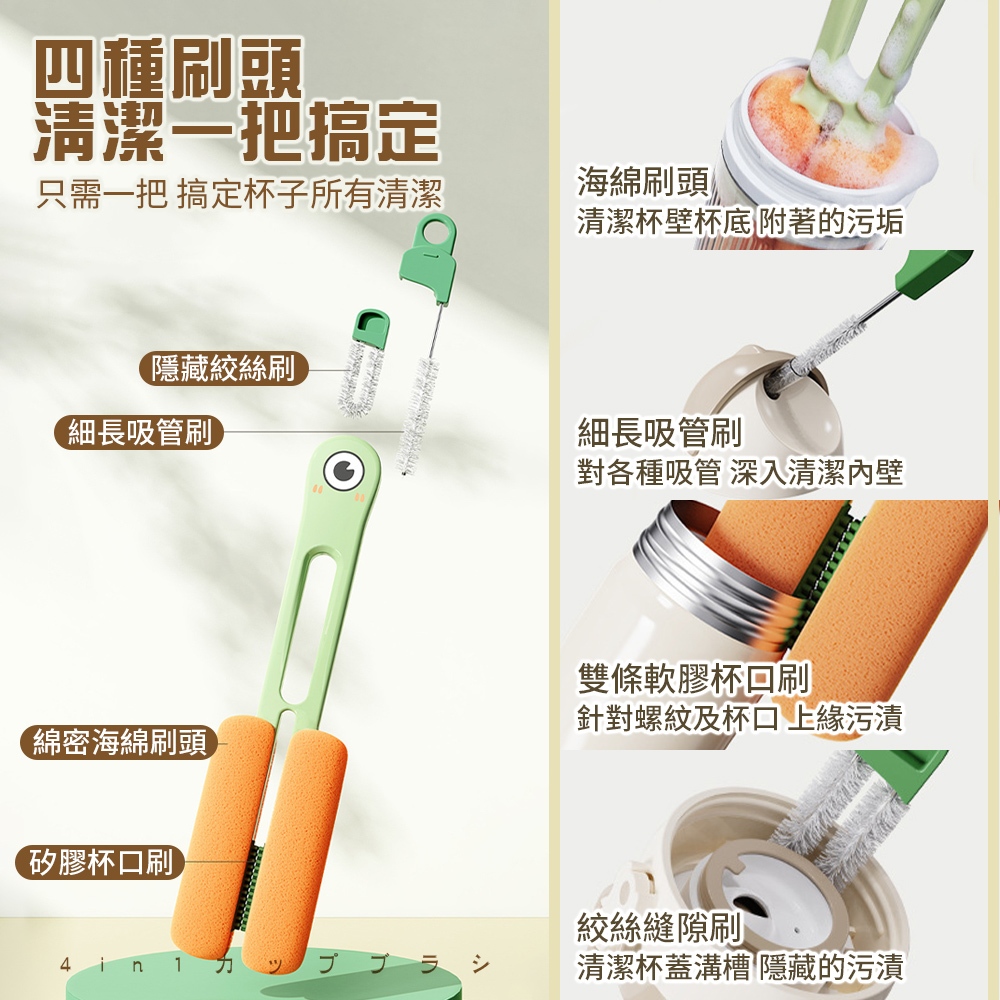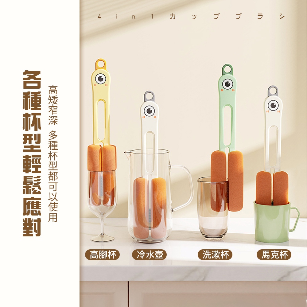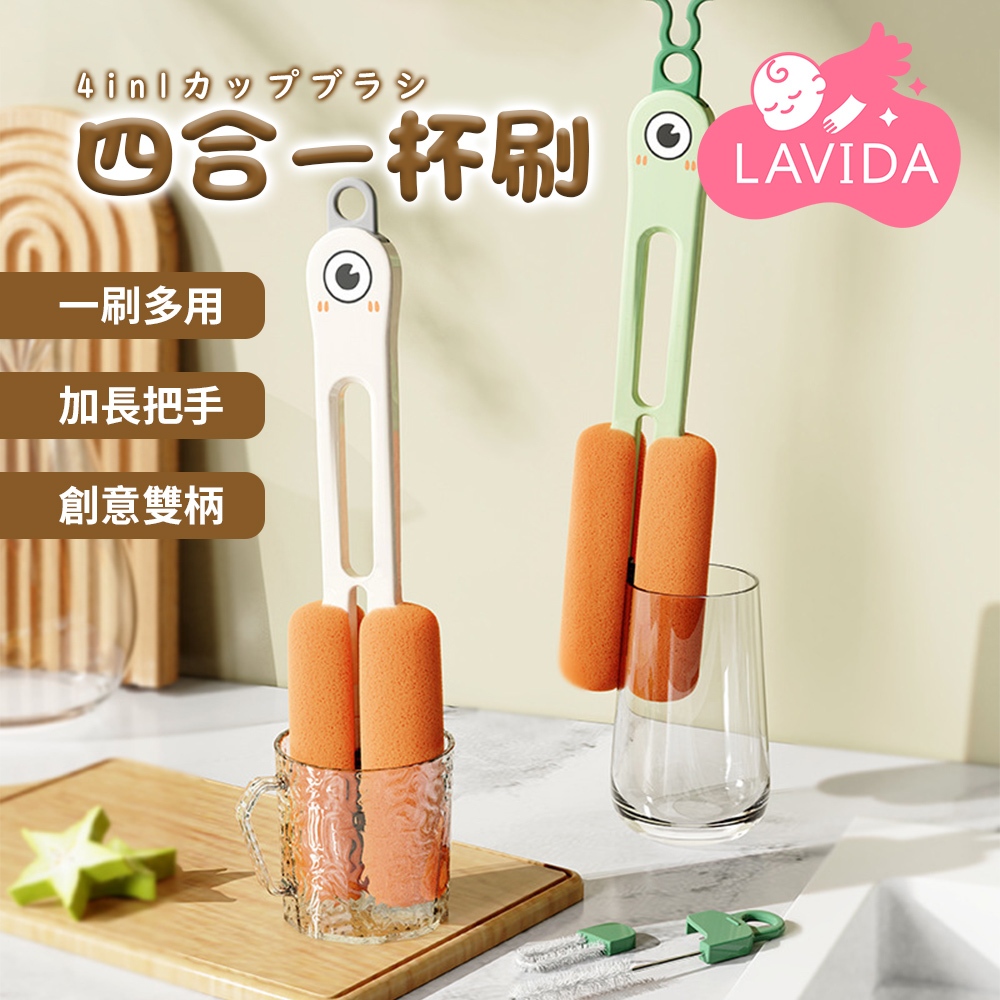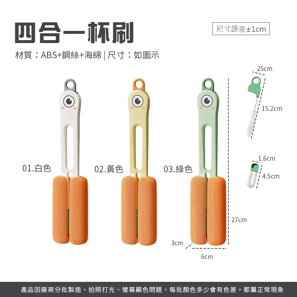 【LAVIDA嚴選】清潔杯刷 四合一杯刷 洗杯刷 水壺刷 瓶刷 保溫瓶刷 長柄杯刷 杯蓋刷 隙縫刷 吸管刷 杯刷 奶瓶刷01.白色-四和一杯刷|02.黃色-四和一杯刷|03.綠色-四和一杯刷Bottle-feedingLAVIDA 育兒好好玩!