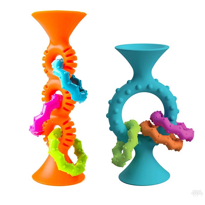 【美國FatBrain】觸覺吸盤環(1入)(橘/藍)–固齒玩具