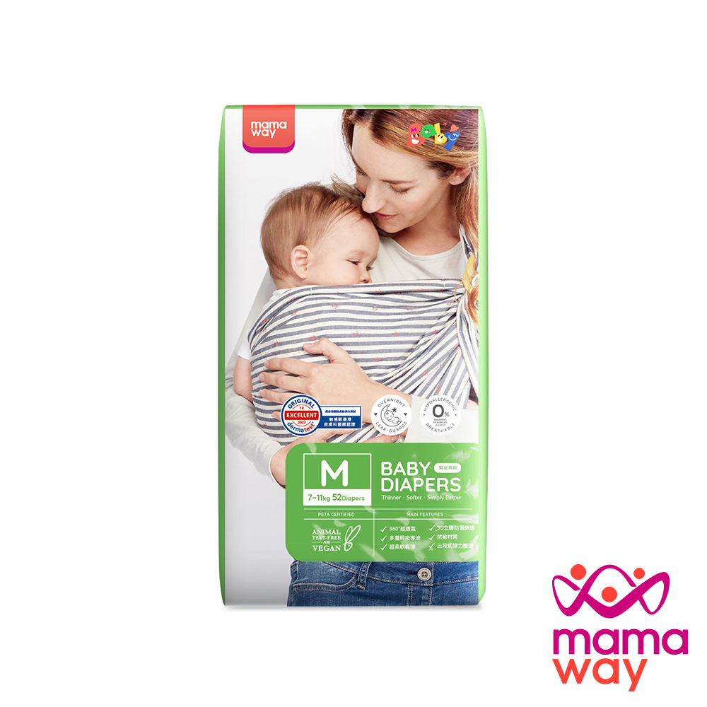 【Mamaway媽媽餵】紙尿褲(Mx52片)白色,MDisposable DiapersMamaway 媽媽餵 母嬰品牌領導者