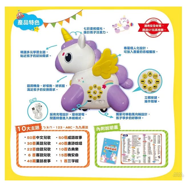 双美文創 跑跑獨角獸音樂故事機(內含108首兒歌+90篇故事+25首晚安曲+40首唐詩+1首三字經)双美文創 跑跑獨角獸音樂故事機(內含108首兒歌+90篇故事+25首晚安曲+40首唐詩+1首三字經)Educational Toysmama-papa親子網