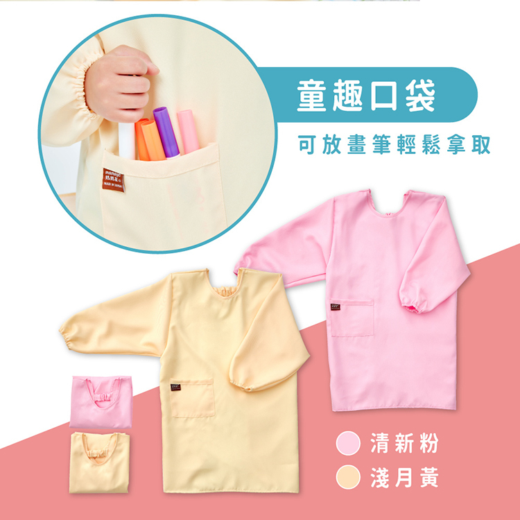 【mamayo】長袖長版畫畫衣/防水圍兜-兒童款(7-11歲/台灣製/多色可選)清新粉|淺月黃|天青藍Educational ToysHi-toys