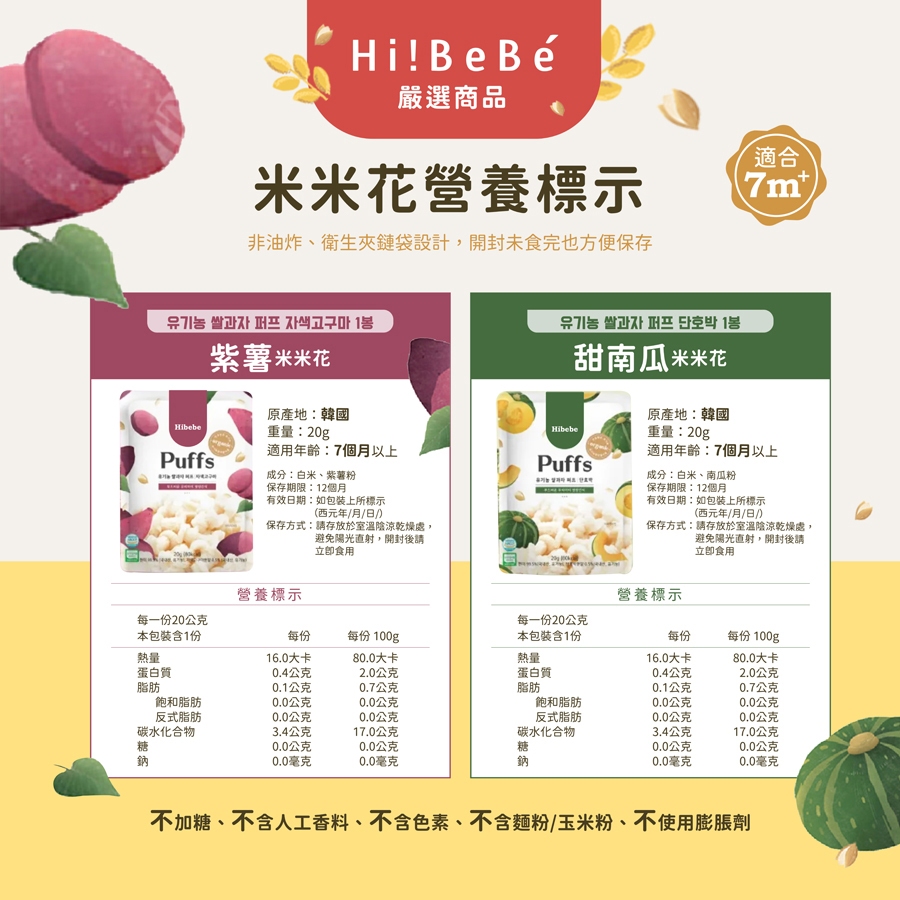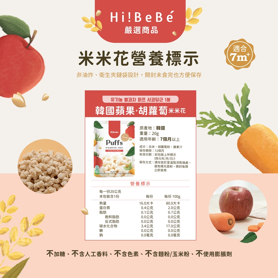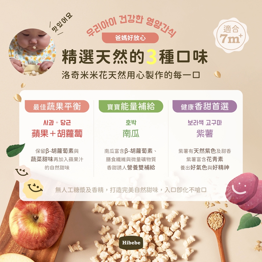 【HIBEBE洛奇】米米花|南瓜 紫薯 蘋果+胡蘿蔔|7m+|20g|嬰兒餅乾 副食品 袋裝 糙米 米米花韓國甜南瓜(20g)|紫薯(20g)|韓國蘋果+胡蘿蔔(20g)Baby SnackHIbebe親子購物