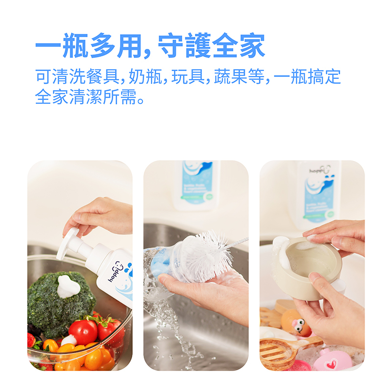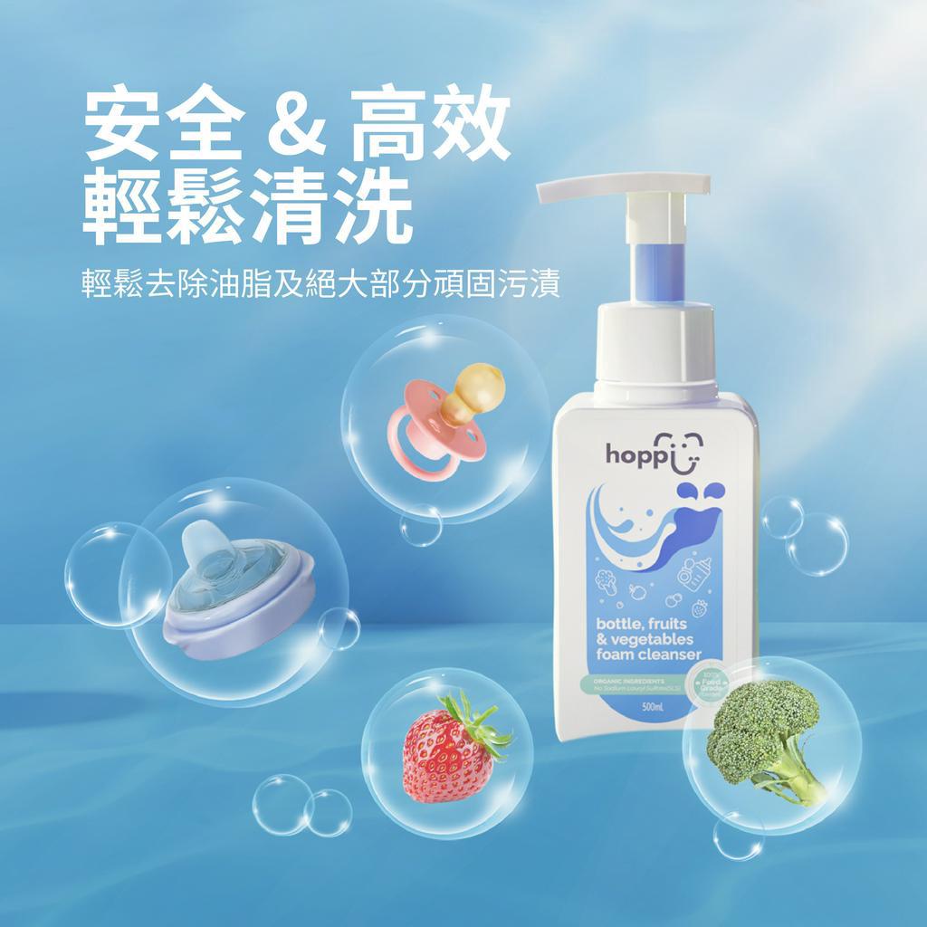 Hoppi 奶瓶蔬果清潔慕斯500ml/瓶 食品級認證 洗潔精清潔液清潔劑洗碗精500ml/1瓶|500ml*3瓶Bottle-feedingHoppi 官方旗艦店