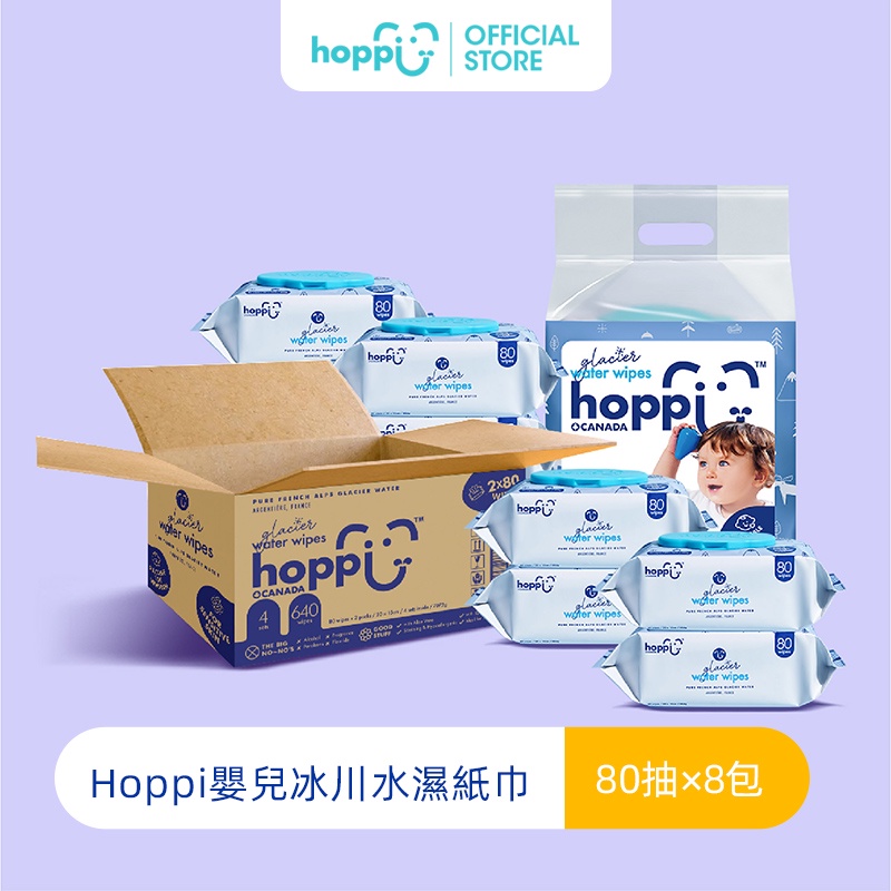 Hoppi 嬰兒冰川水濕紙巾80抽8包入特厚款 敏感肌膚適用 無酒精無香精Hoppi 嬰兒冰川水濕紙巾80抽8包入特厚款 敏感肌膚適用 無酒精無香精WipesHoppi 官方旗艦店