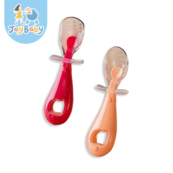 JOYBABY 禾果 2入副食品湯匙 矽膠湯匙 寶寶餐具 果泥勺 矽膠勺石榴紅+珊瑚橘|青木綠+嫩果綠UtensilsJoyBaby就愛寶貝