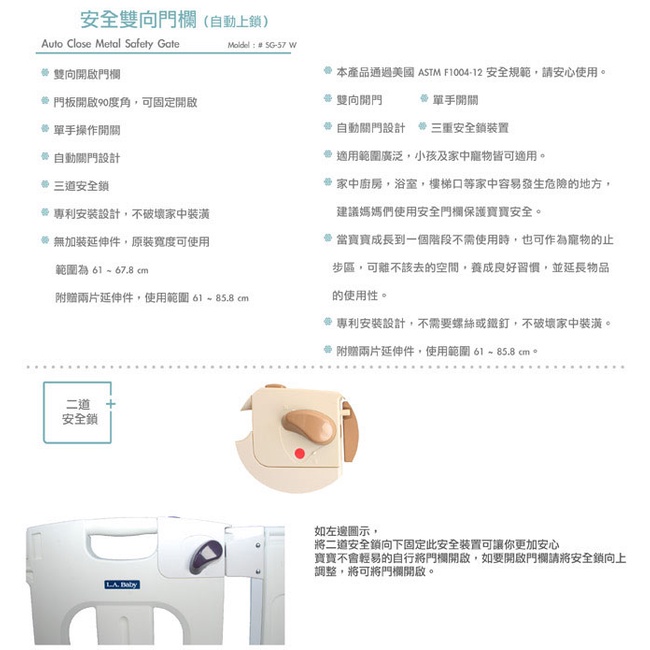 【美國 L.A. Baby】雙向安全門欄/圍欄/柵欄純白(贈兩片延伸件/純白色)【美國 L.A. Baby】雙向安全門欄/圍欄/柵欄純白(贈兩片延伸件/純白色)Baby Gates & DoorwaysL.A.BABY 官方旗艦店