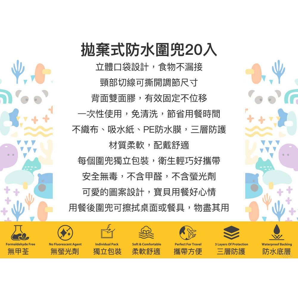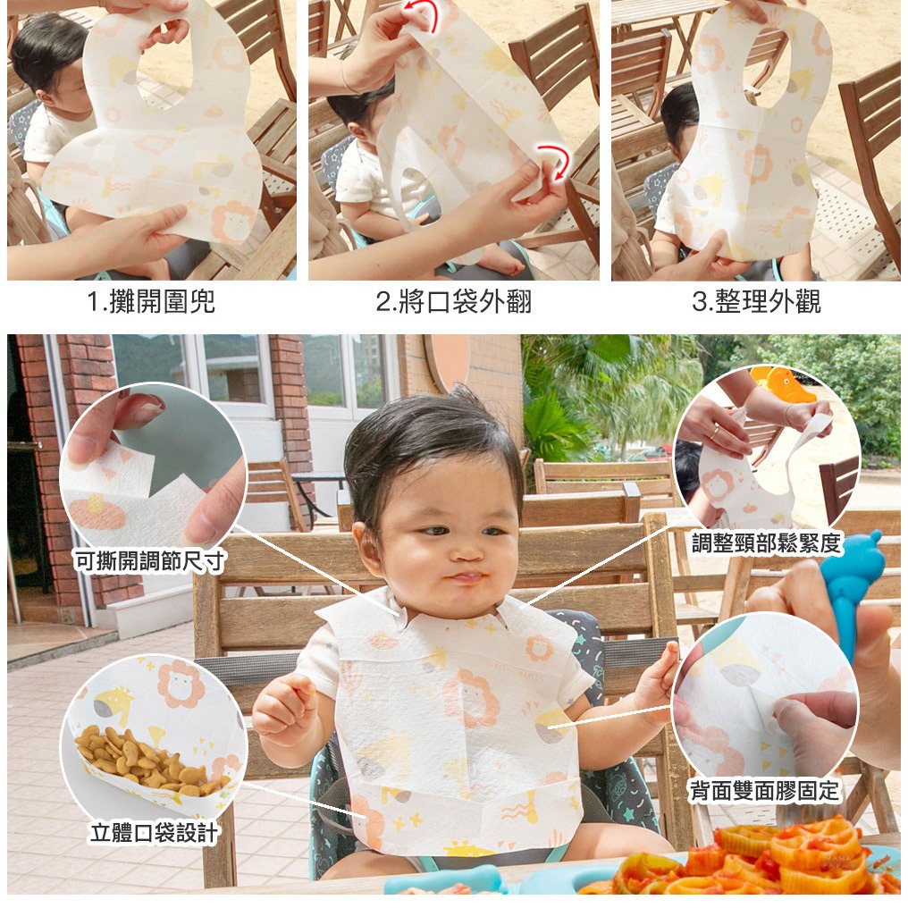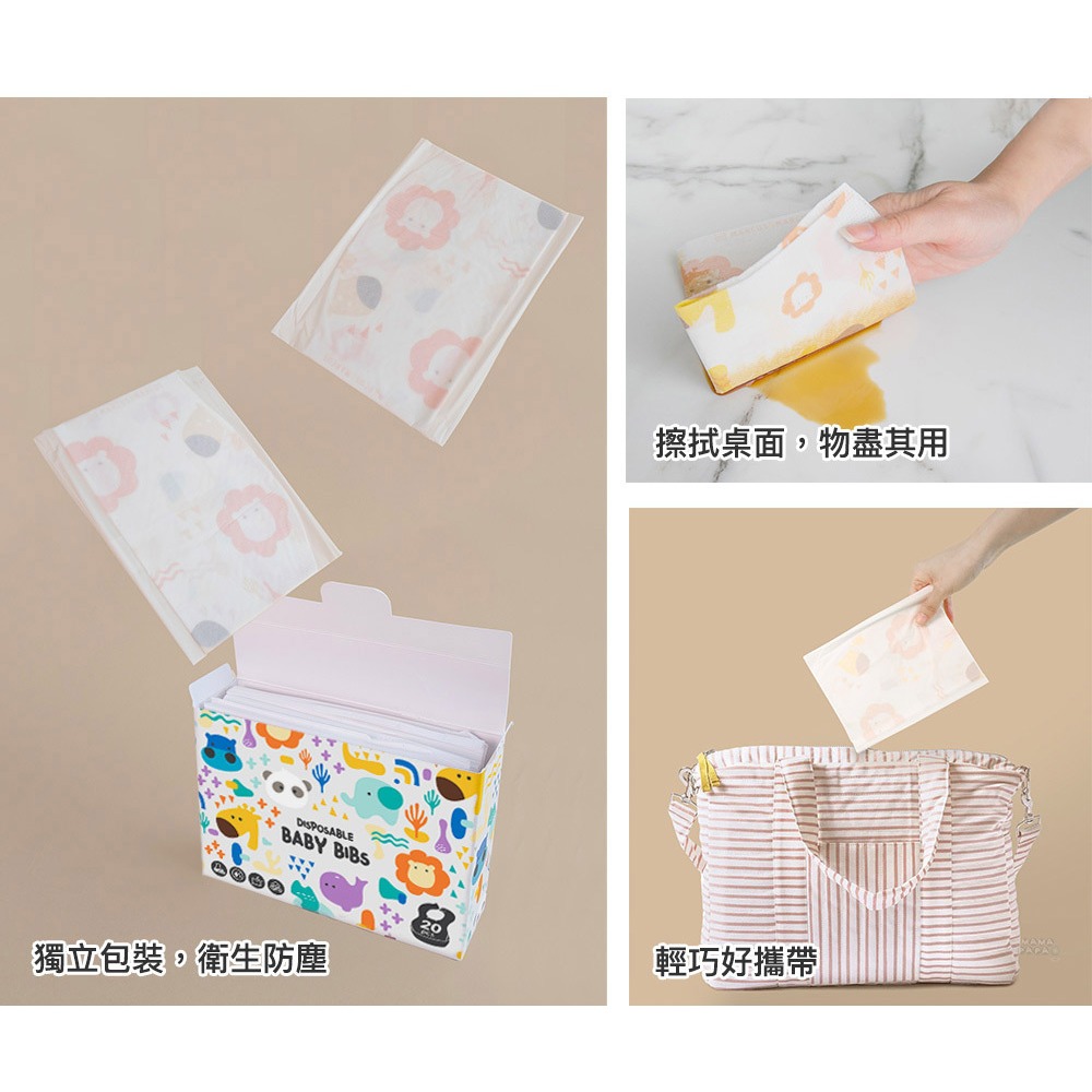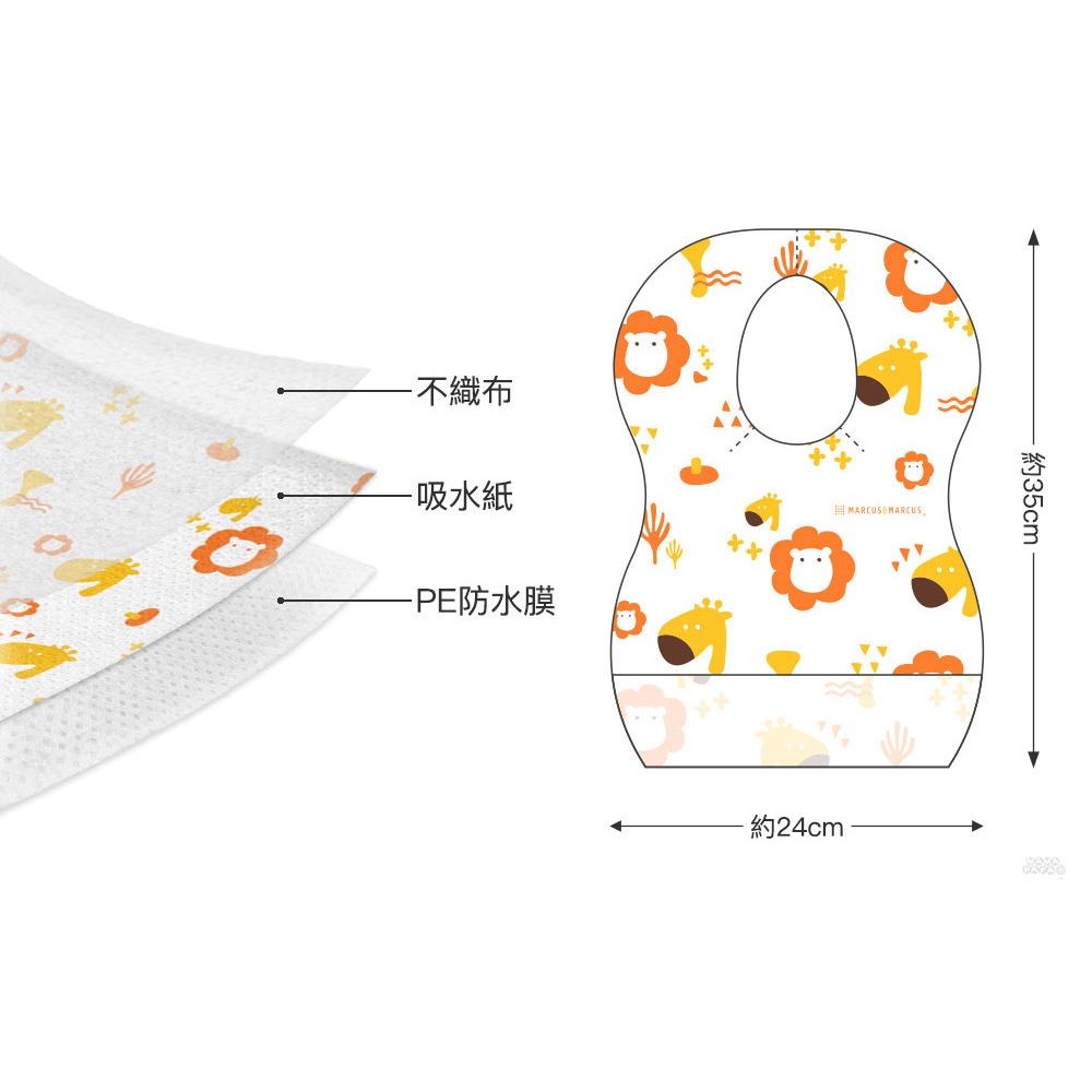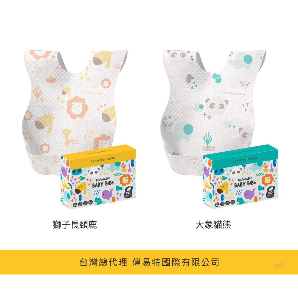 【加拿大MARCUS&MARCUS 】拋棄式防水圍兜20入(獅子長頸鹿/大象貓熊)獅子長頸鹿|大象貓熊Bibsmama-papa親子網