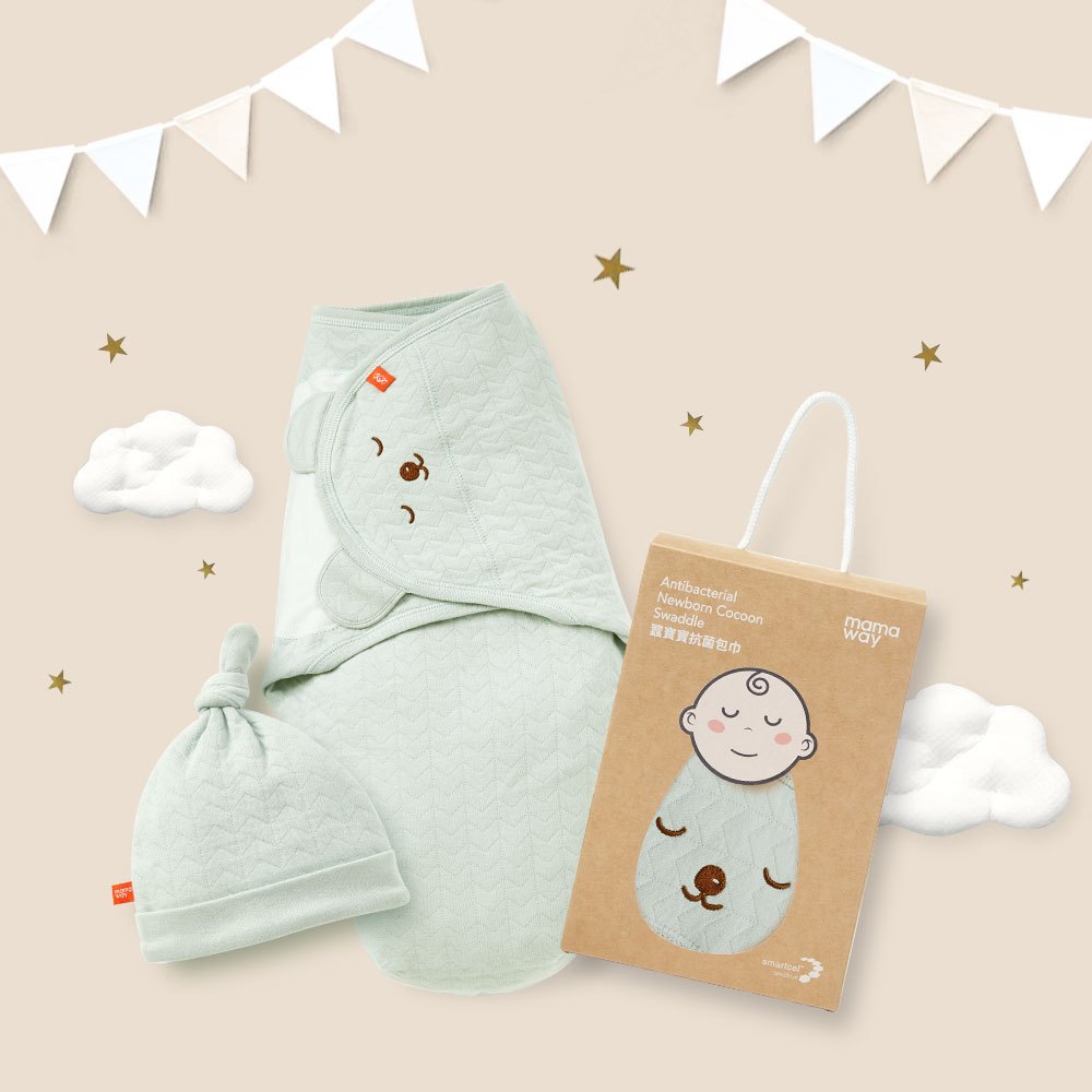 【Mamaway媽媽餵】睡睡熊蠶寶寶抗菌包巾禮盒組淺綠|米色|粉色Mattresses & BeddingMamaway 媽媽餵 母嬰品牌領導者