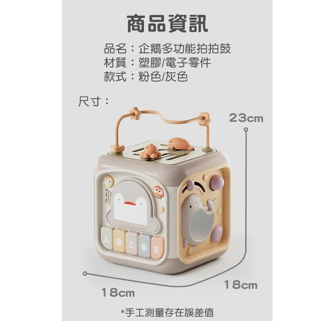 JOYBABY 益智玩具 六面體音樂燈光感統玩具 手拍鼓 形狀配對 拍拍鼓 啟蒙玩具粉,企鵝六面盒Educational ToysJoyBaby就愛寶貝