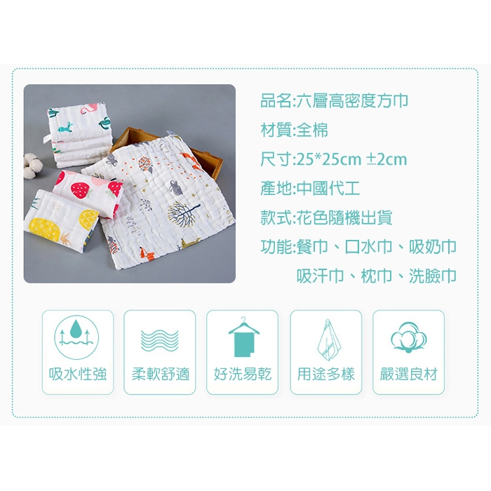 JOYBABY 兒童口水巾 六層紗高密褶皺 餵奶巾小方巾 25*25cm花色隨機|花色隨機5條入BibsJoyBaby就愛寶貝