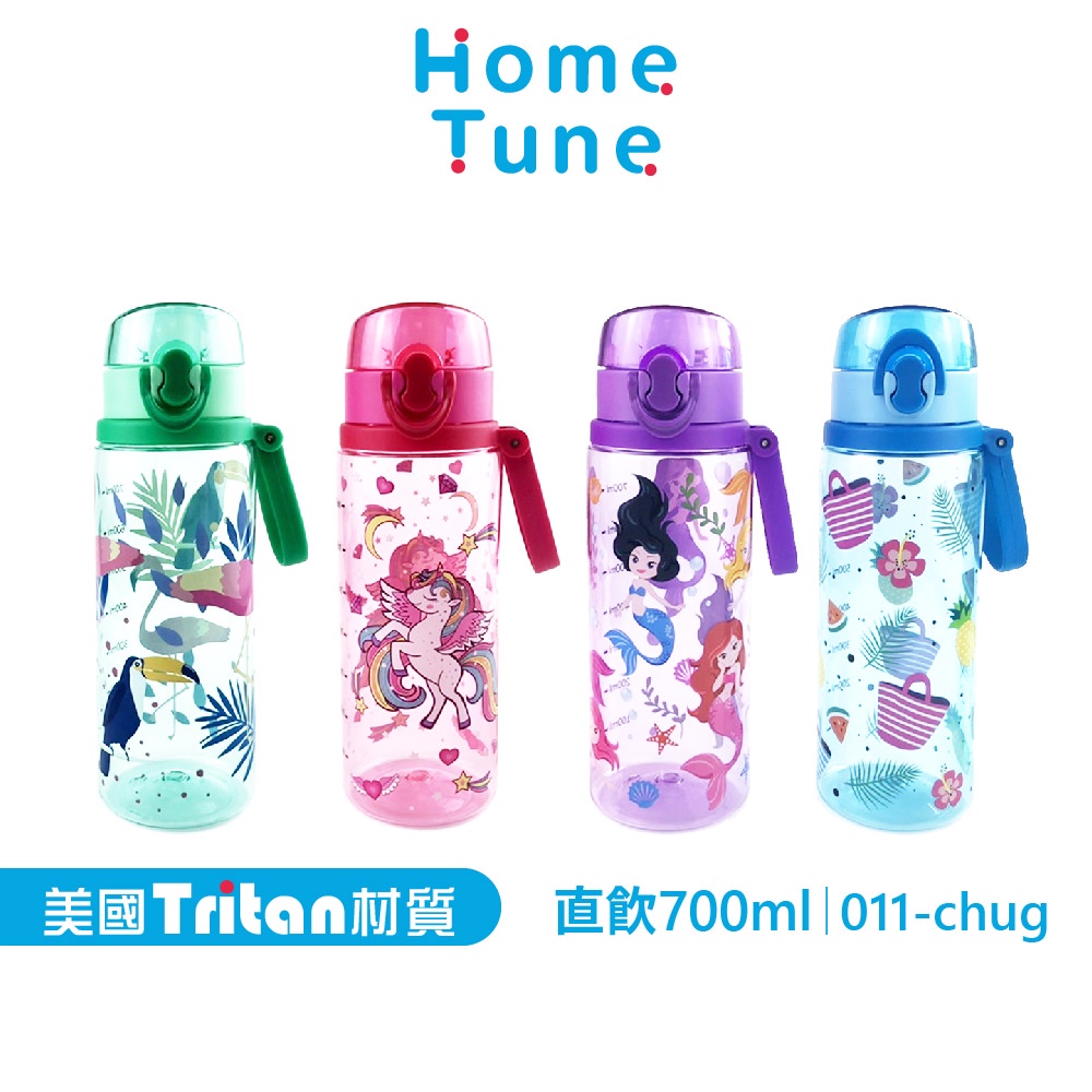 【特價出清】Home Tune家音 鎖扣彈蓋直飲式水壺700ml|水壺兒童水壺運動水壺_011-chug海灘(藍)|紅鶴(綠)|獨角獸(粉)|美人魚(紫)UtensilsHome Tune家音