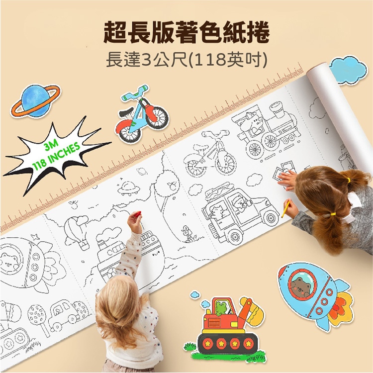 【JarMelo 原創美玩】300公分可黏貼著色紙捲-交通探險隊【JarMelo 原創美玩】300公分可黏貼著色紙捲-交通探險隊Educational ToysHi-toys