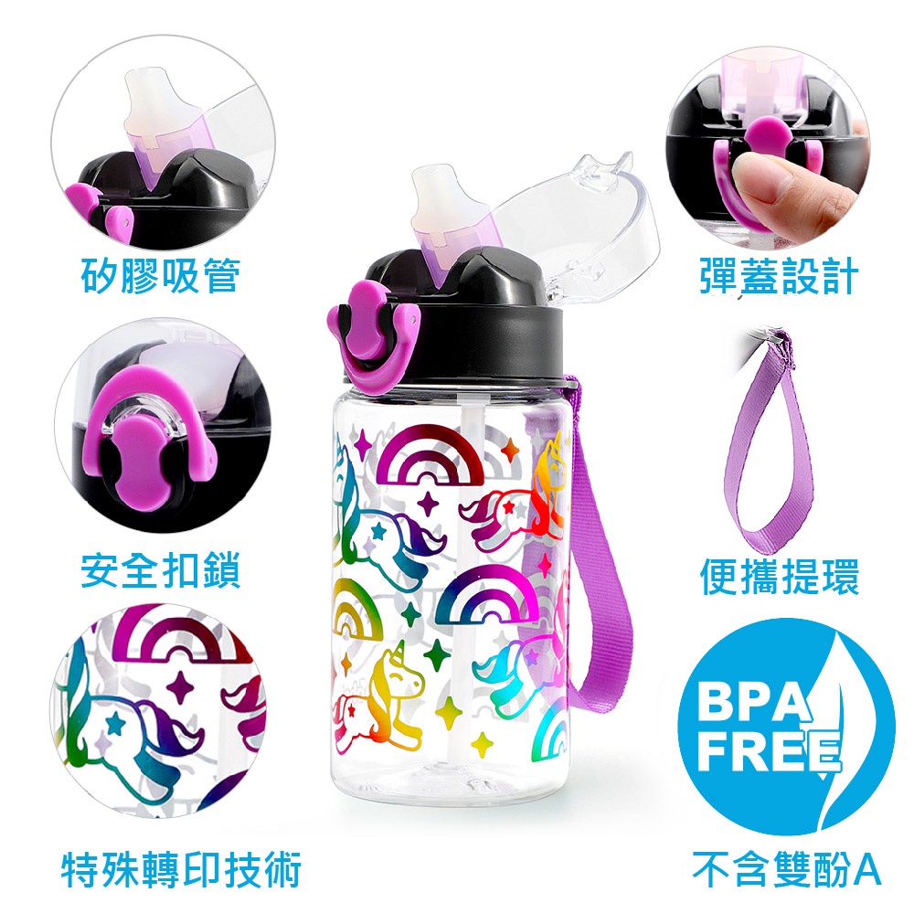 Home Tune家音兒童透明閃亮彈蓋吸管式水壺-420ml|Tritan水壺兒童水壺外出水壺吸管水壺_HT-1005泡泡(藍)|紅愛心(粉)|獨角獸(紫)|滿天星(綠)UtensilsHome Tune家音