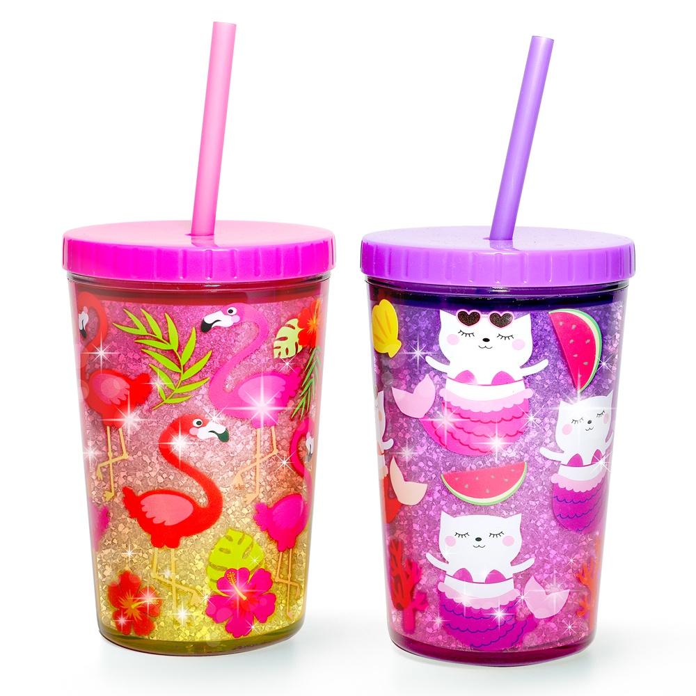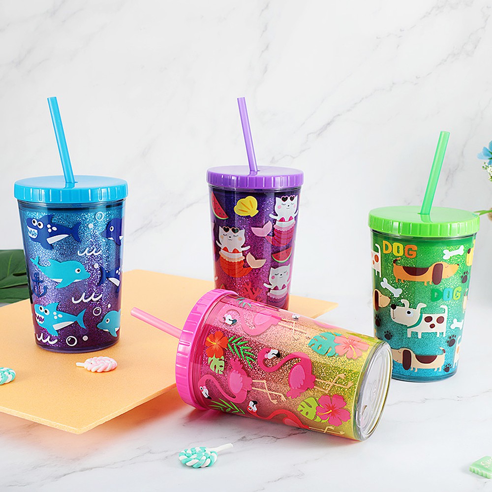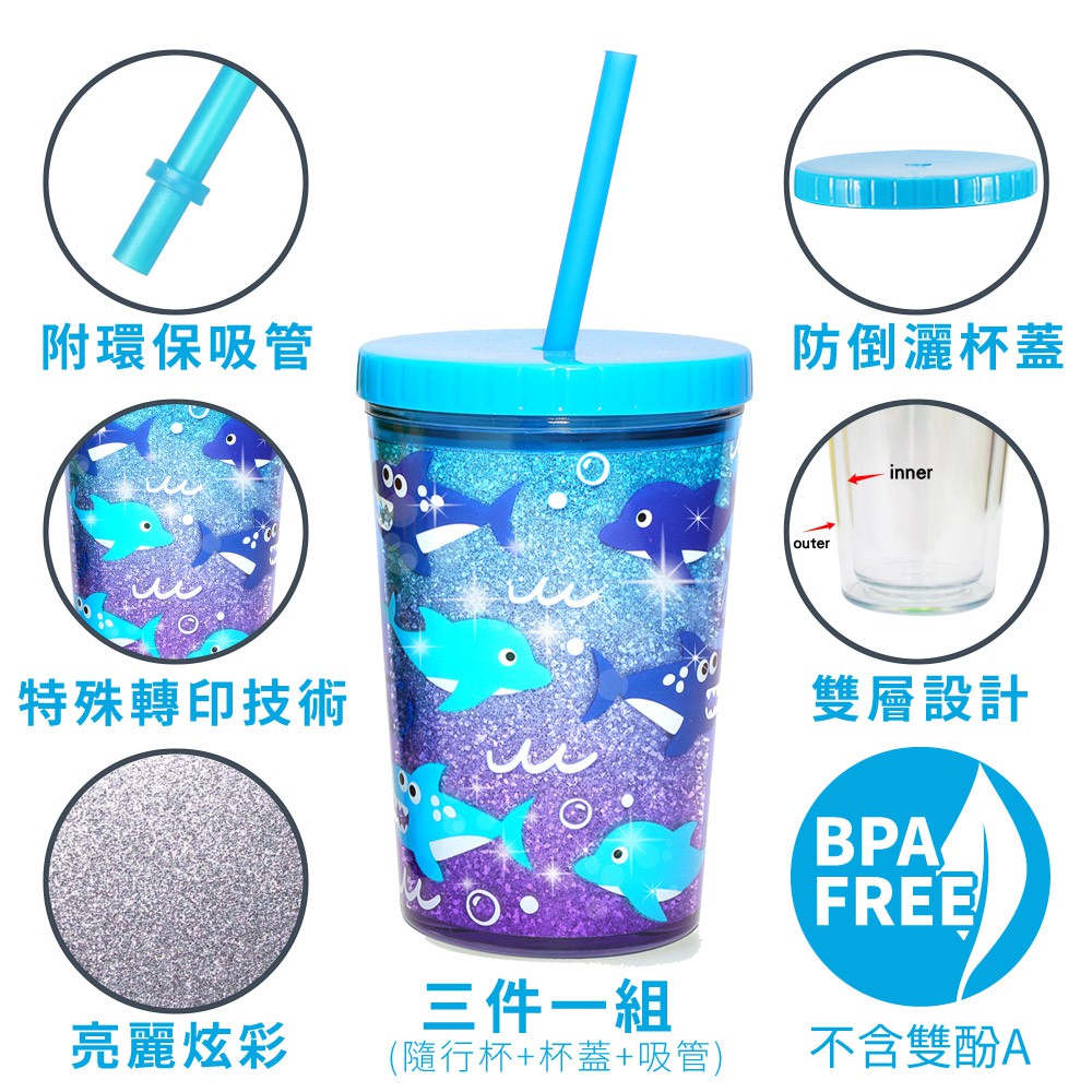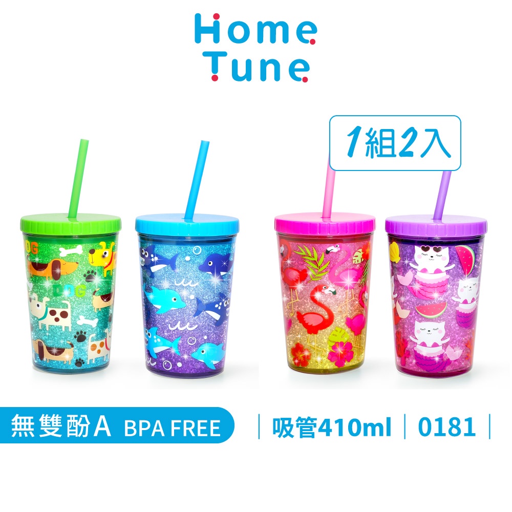 Home Tune家音雙層吸管杯410ml|冷飲隨手杯冷水杯隨行杯外帶杯 0181鯊魚與狗|貓魚與火烈鳥UtensilsHome Tune家音