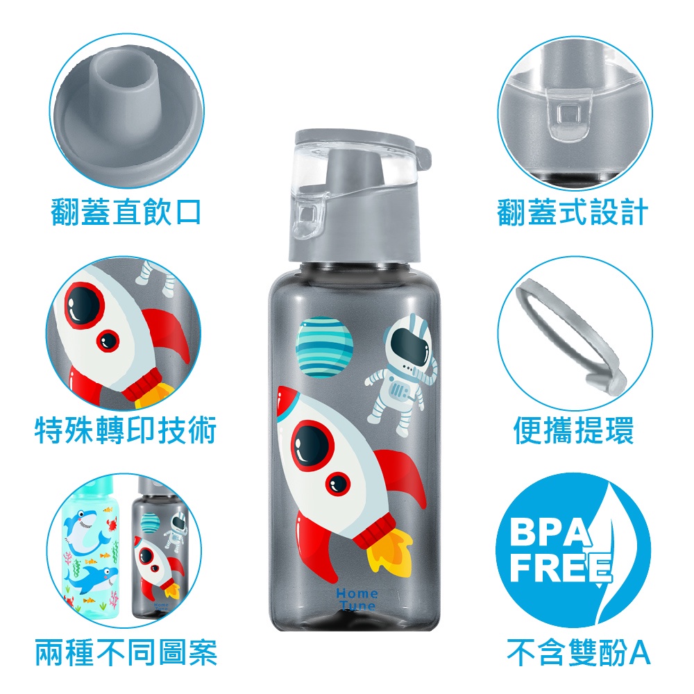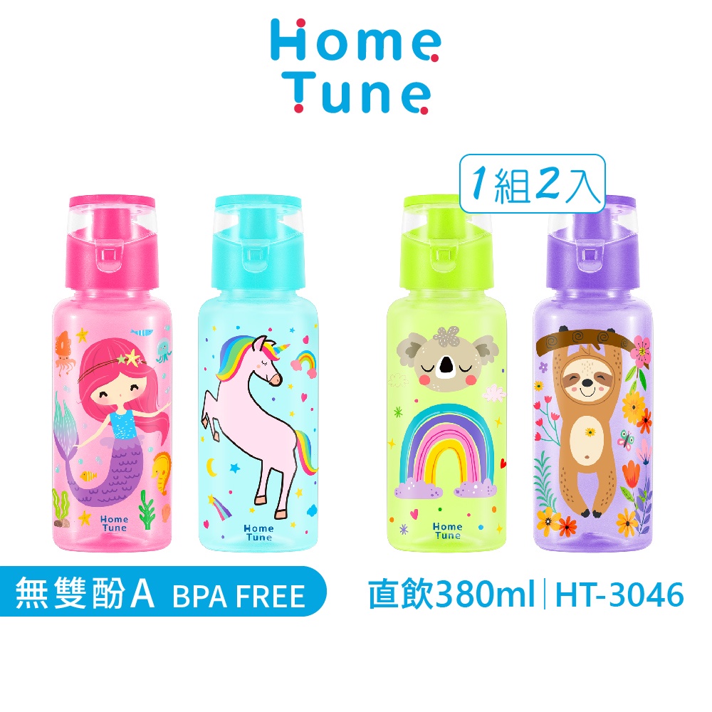 Home Tune家音兒童翻蓋直飲式水壺-380ml(一組2入)|提環水壺兒童水壺戶外水壺直飲_HT-3046鯊魚與太空人|恐龍與花豹|美人魚與獨角獸|無尾熊與樹懶UtensilsHome Tune家音