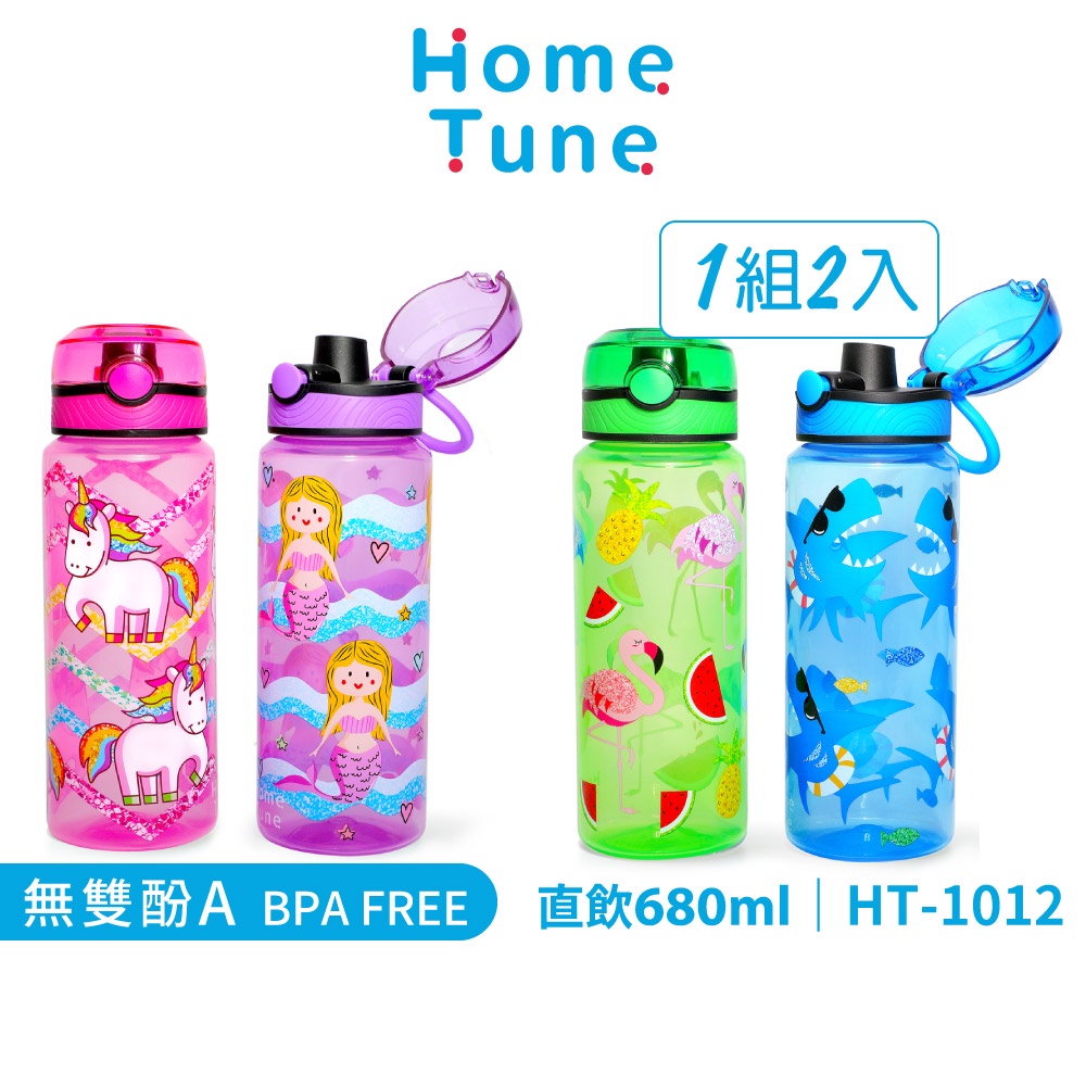 Home Tune家音 兒童彈蓋直飲式水壺680毫升兩入組|直飲式水壺運動水壺外出隨身水壺 HT-1012獨角獸與美人魚|鯊魚與水果UtensilsHome Tune家音