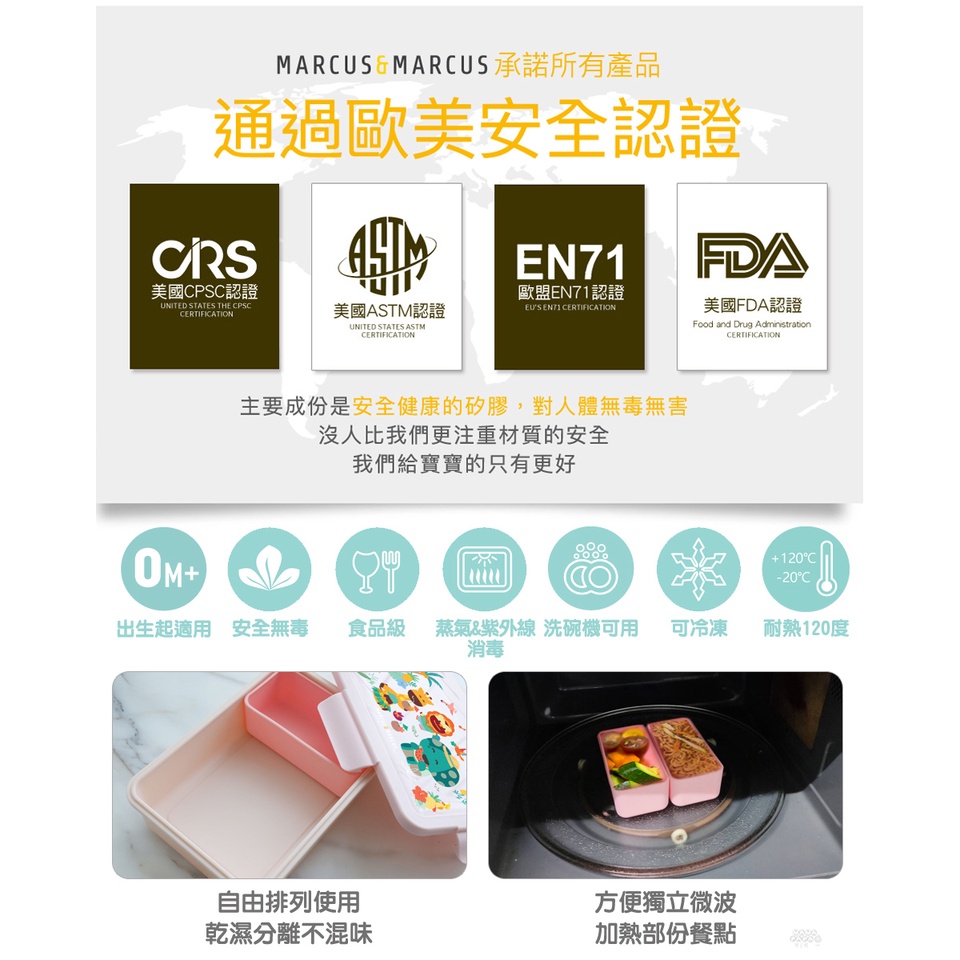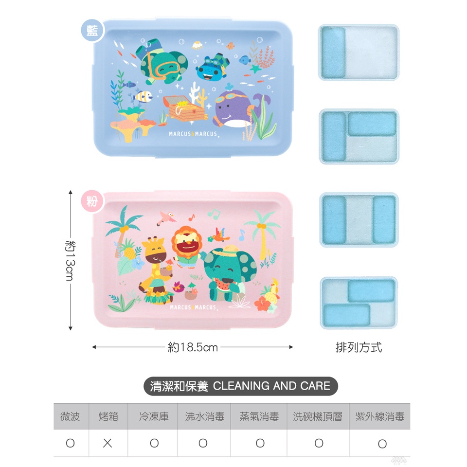 【加拿大MARCUS&MARCUS】動物樂園輕巧分隔密封餐盒(2色可選)粉|藍Utensilsmama-papa親子網