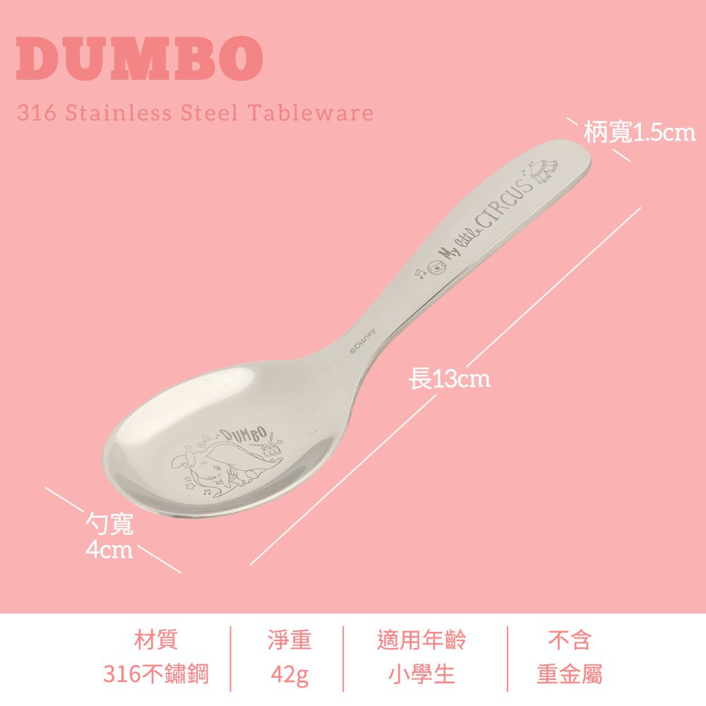 【HOUSUXI官方旗艦】迪士尼小飛象系列-316不鏽鋼兒童餐具(款式任選)小飛象-大童13cm|小飛象-小童10.5cmUtensilsHOUSUXI 舒希官方旗艦店