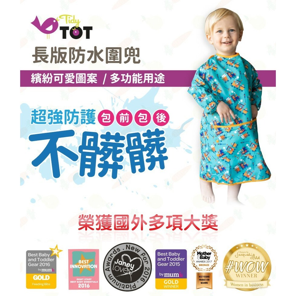 【英國Tidy TOT】長版防水圍兜(多色可選)田園綠|葡萄紫|森林灰|酷火車Bibsmama-papa親子網