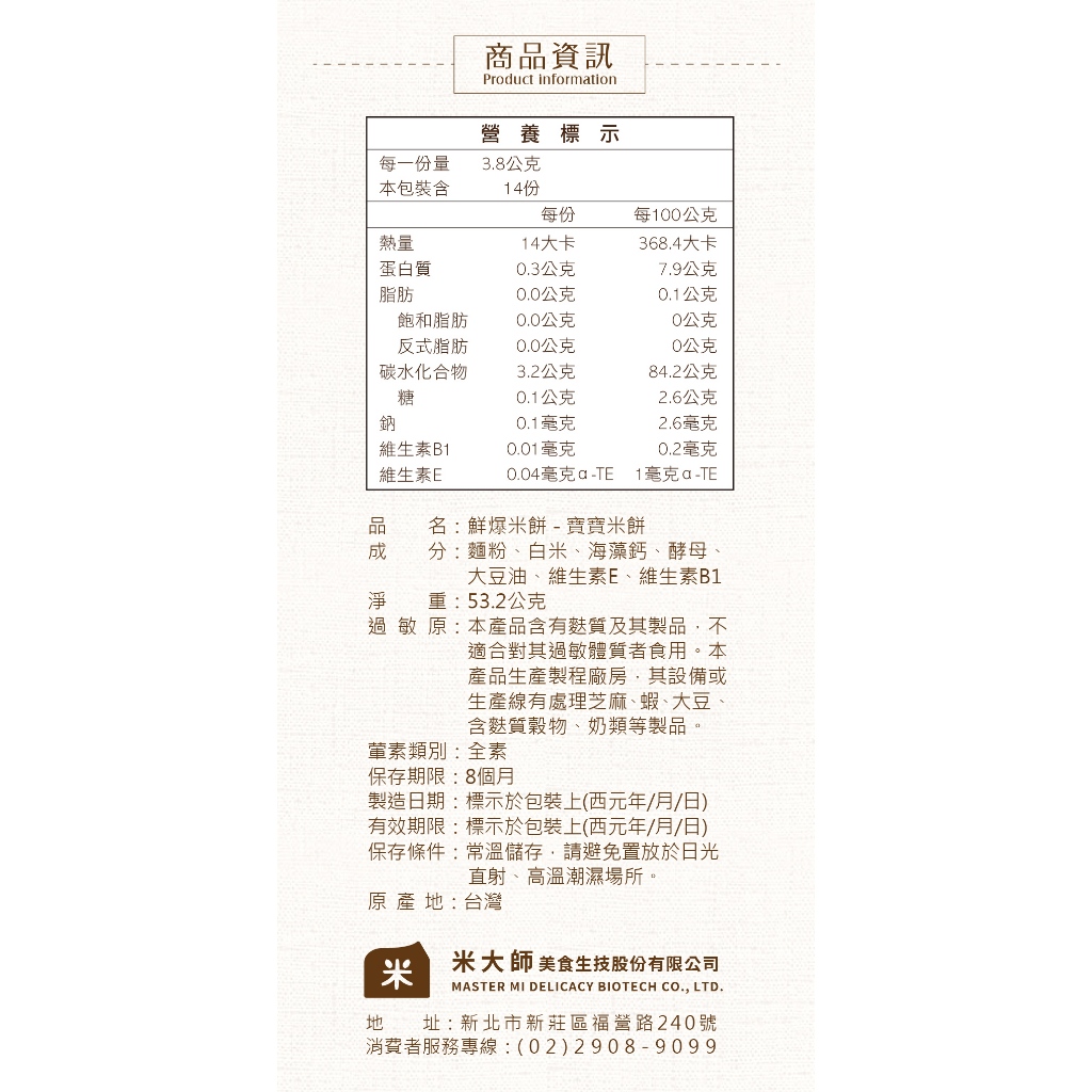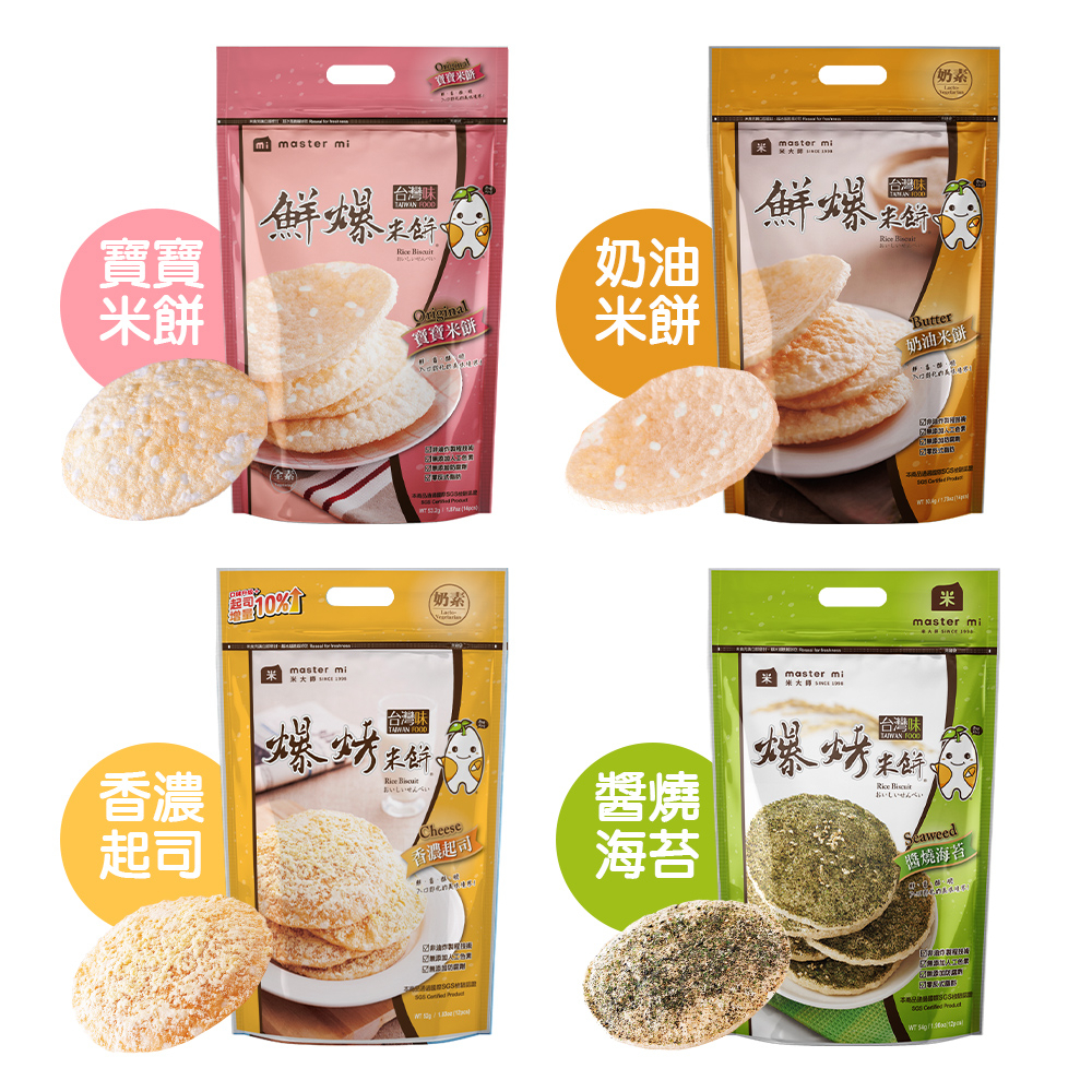 【米大師】鮮爆米餅-寶寶米餅/奶油米餅/醬燒海苔/香濃起司(米餅|非油炸|零食|餅乾)寶寶米餅|奶油米餅|醬燒海苔|香濃起司Baby SnackMaster Mi 米大師官方商城