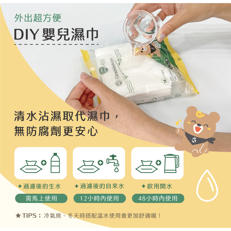 妙妙熊【平紋棉柔巾】(15張/包)鉅瑋 隨身包 拋棄式 一次性紗布巾 寶寶巾 乾濕兩用紗布巾 餵奶巾 口水巾 洗澡巾15張/包WipesGShop|鉅瑋官方直營店