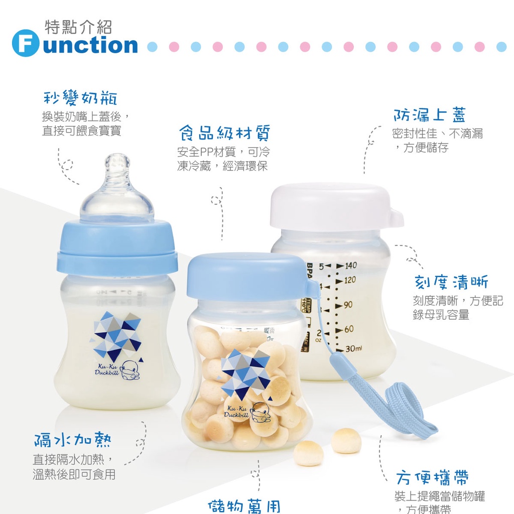 酷咕鴨 KU.KU 幾何視界PP寬口儲乳瓶3入140ml藍色|粉色BreastfeedingMalldj親子購物網