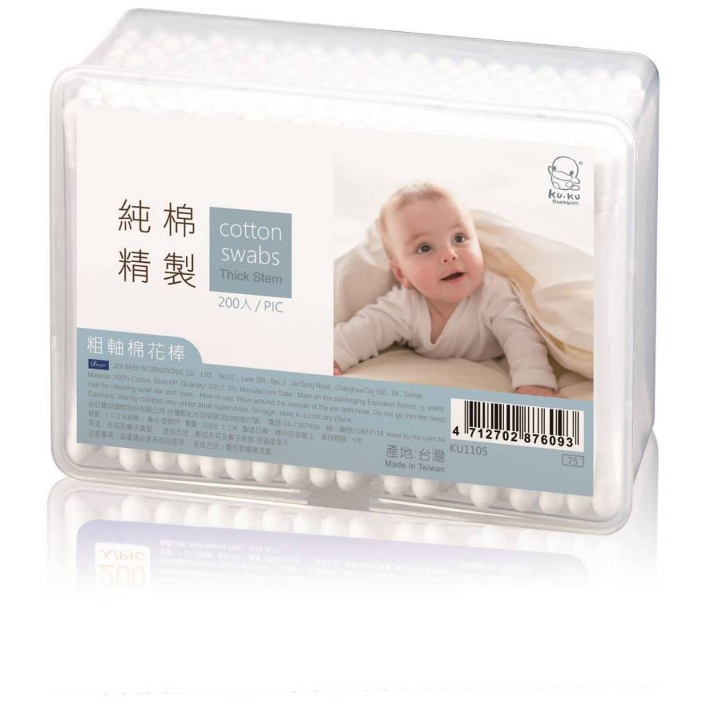 酷咕鴨 KU.KU 粗軸棉花棒方盒-200入200入OthersMalldj親子購物網