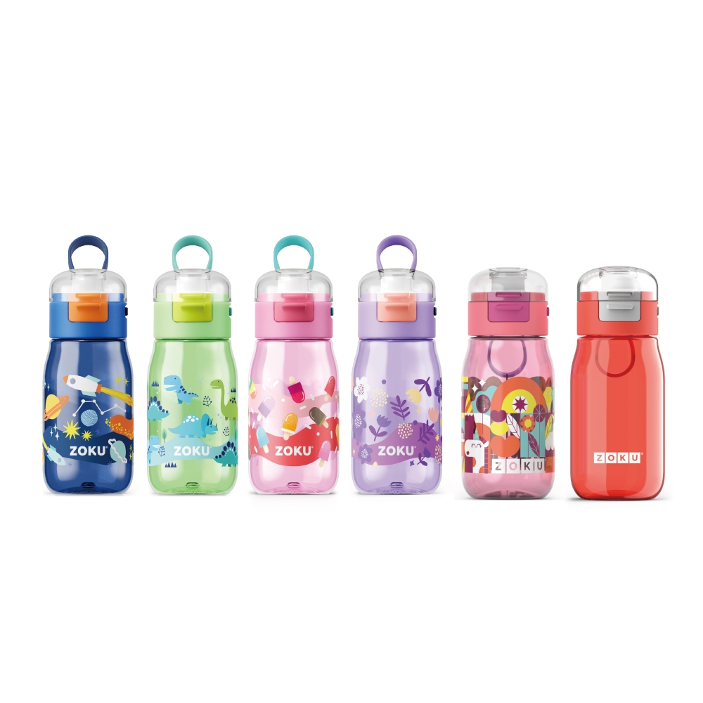 【美國ZOKU】兒童直飲式冷水壺 475ml 幼兒水壺 防漏水杯 運動水瓶 上學水壺 輕巧耐用 無毒Tritan材質繽紛粉|花朵紫|恐龍綠|太空藍|粉紅色|紅色UtensilsMalldj親子購物網