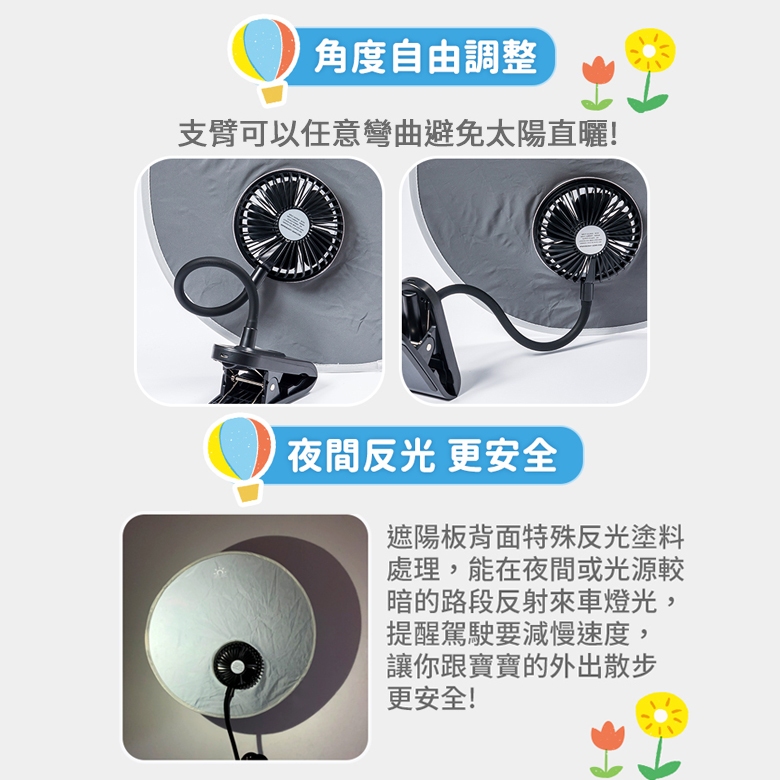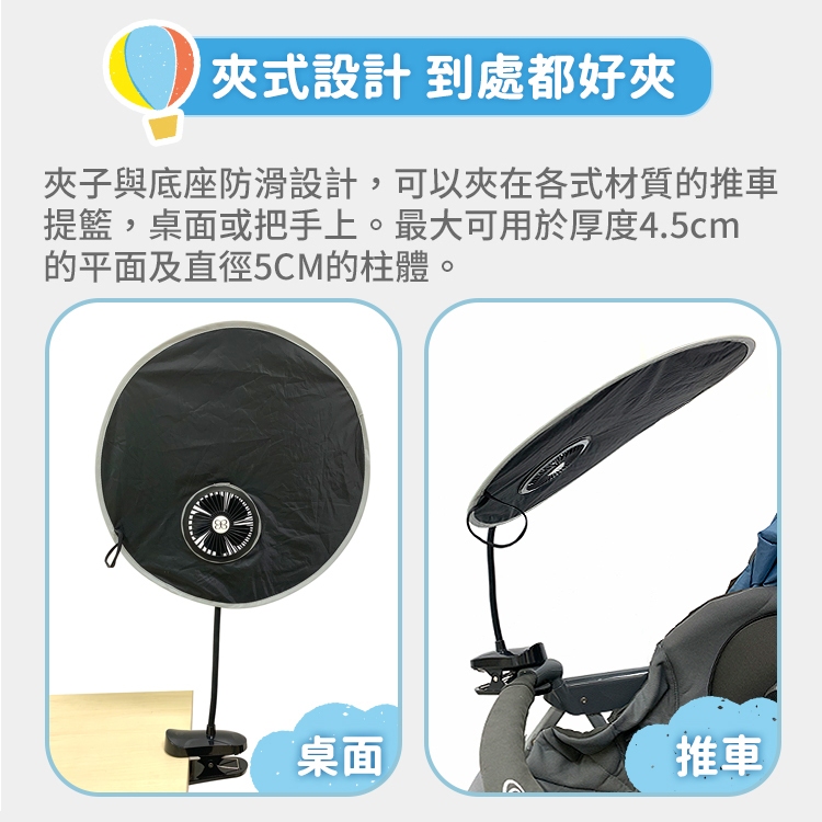 Buggygear 二合一行動風扇 遮陽 嬰兒車風扇 充電風扇 折疊風扇 夾式風扇 電風扇 外出風扇【官方快速出貨】二合一風扇Stroller AccessoriesGIO Pillow官方商城