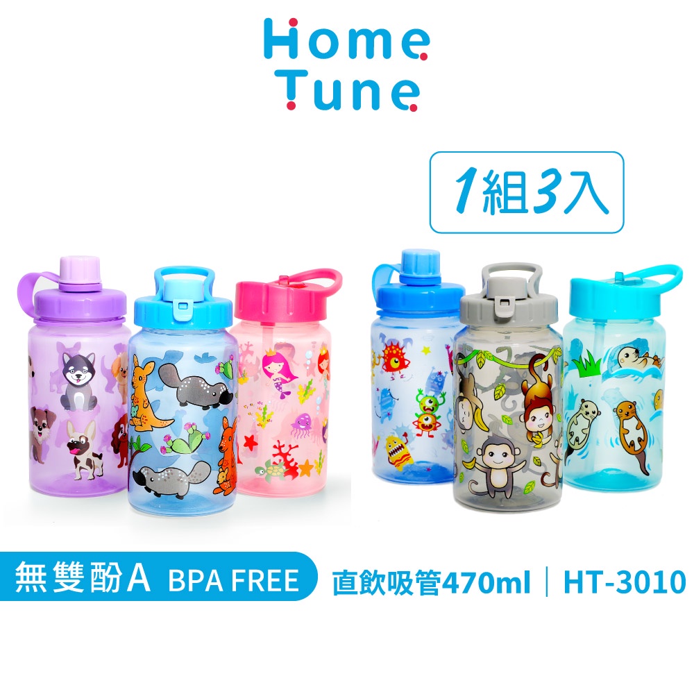 【特價出清】Home Tune兒童直飲吸管水壺3入470ml|翻蓋扣式旋轉開瓶水瓶冷水瓶HT-3010女孩款3入組|男孩款3入組UtensilsHome Tune家音