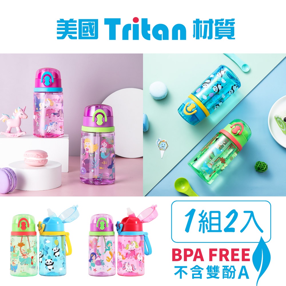 Home Tune家音美國Tritan材質兒童水壺彈蓋式吸管水壺400ML兩入組|防漏輕量外出壺吸管杯 HS-016美人魚與獨角獸|飛機與熊貓UtensilsHome Tune家音
