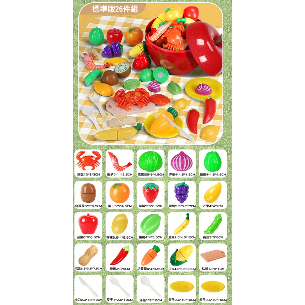 JOYBABY 26件組蔬果切切樂 附大蘋果收納桶 海鮮切切樂 廚房玩具 學習認知玩具26件組,附大蘋果收納桶Pretend PlayJoyBaby就愛寶貝