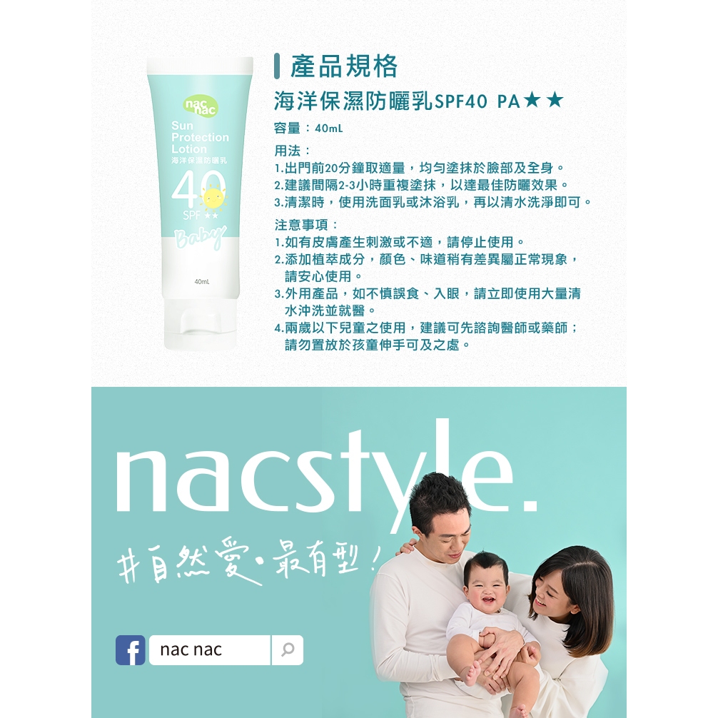 【nac nac】海洋保濕防曬乳SPF40/40ml|海洋友善 純物理性 保濕【nac nac】海洋保濕防曬乳SPF40/40ml|海洋友善 純物理性 保濕Sun CareLC Mom&Kids官方旗艦店