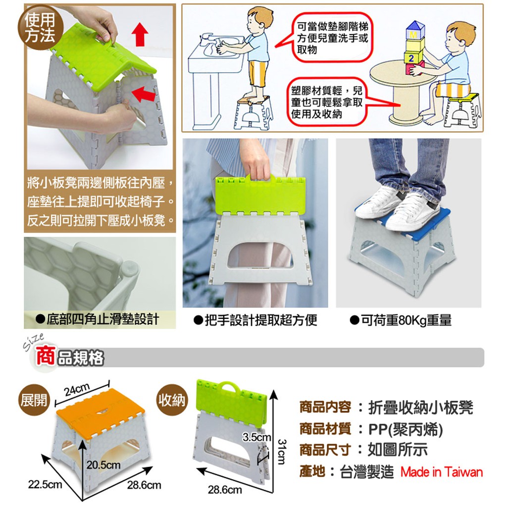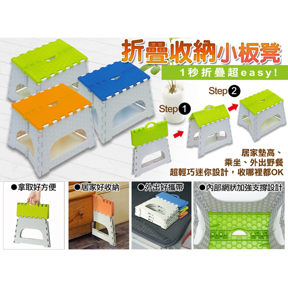 WallyFun 屋麗坊 折疊收納小板凳/折疊椅 ~共3色可選 (綠/橘/藍)藍色|綠色Storage & OrganizationLOG 樂格地墊