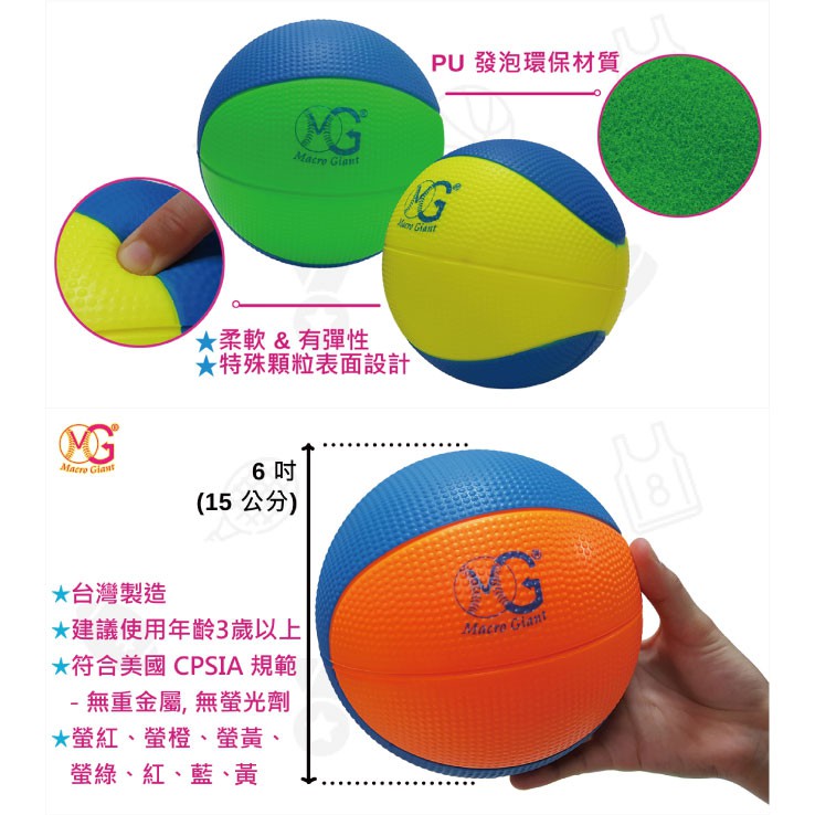 MACRO GIANT 15cm 籃球<4大超商可取貨> pu發泡 安全無毒 兒童節禮物螢紅|螢橙|螢黃|螢綠|紅|藍|黃|全藍|黑Sports & Outdoor PlayMACRO GIANT 休閒玩具品牌