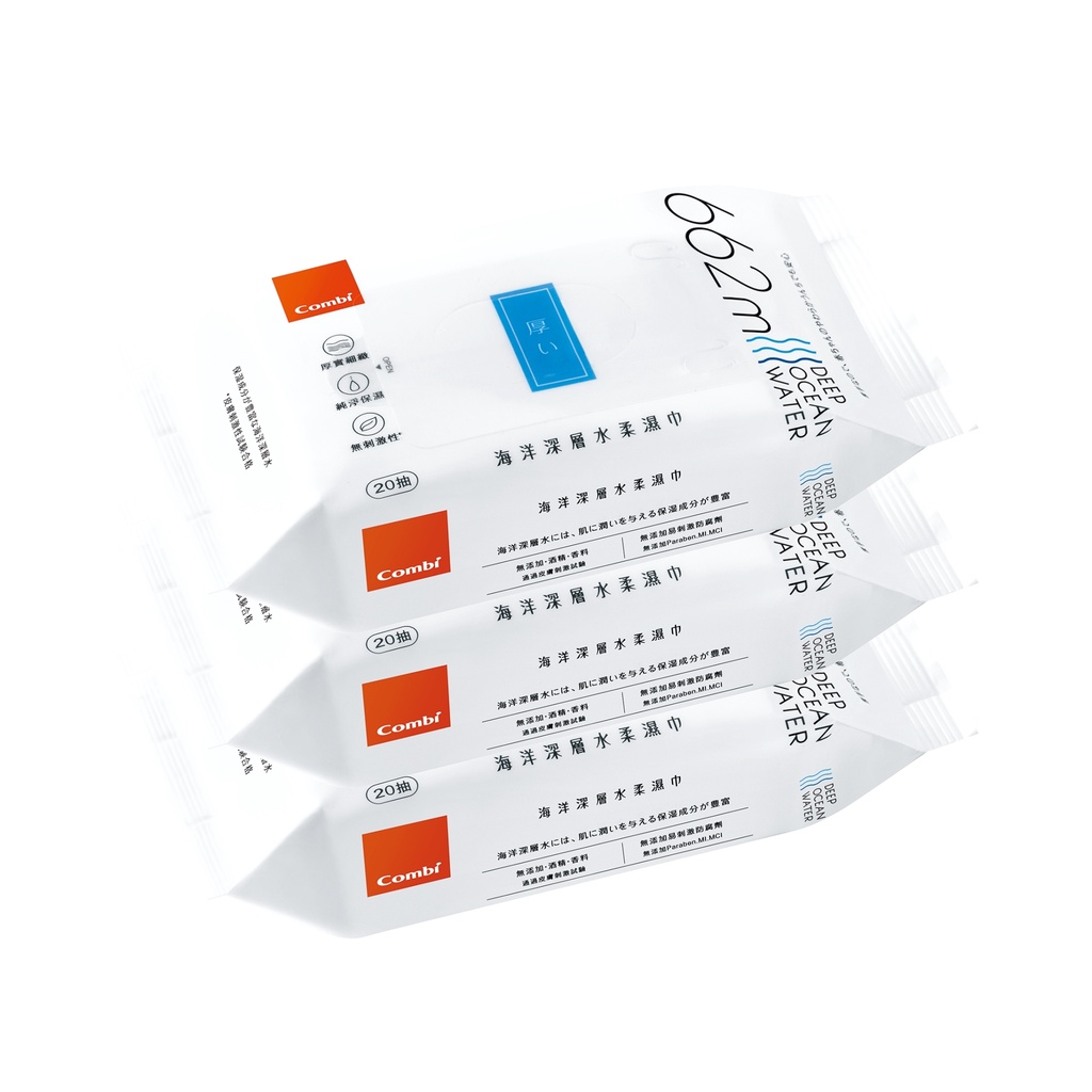 【康貝 Combi】厚款濕紙巾 隨身包 20抽 海洋深層水 嬰兒濕紙巾 溫和不刺激 外出必備 全家皆適用 多重安全認證20抽|20抽x3包WipesMalldj親子購物網
